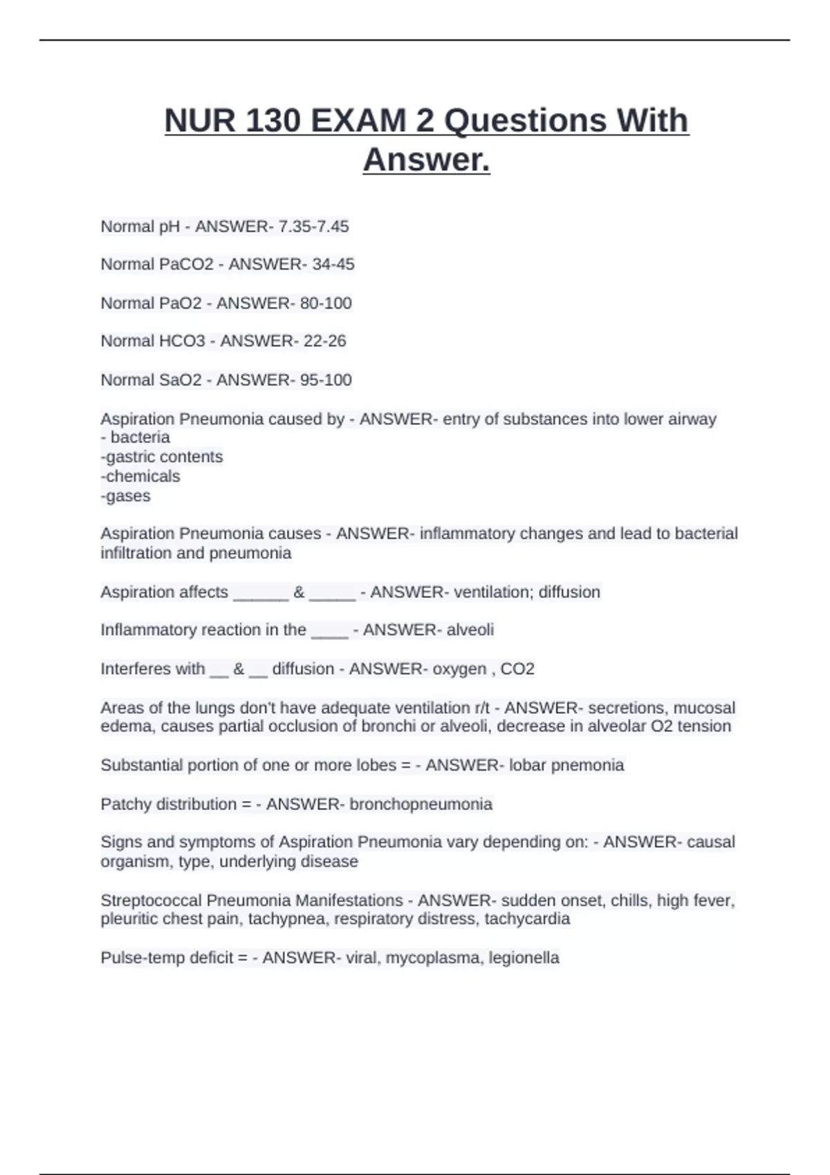 Normal PaCO2 - ANSWER- 34-45