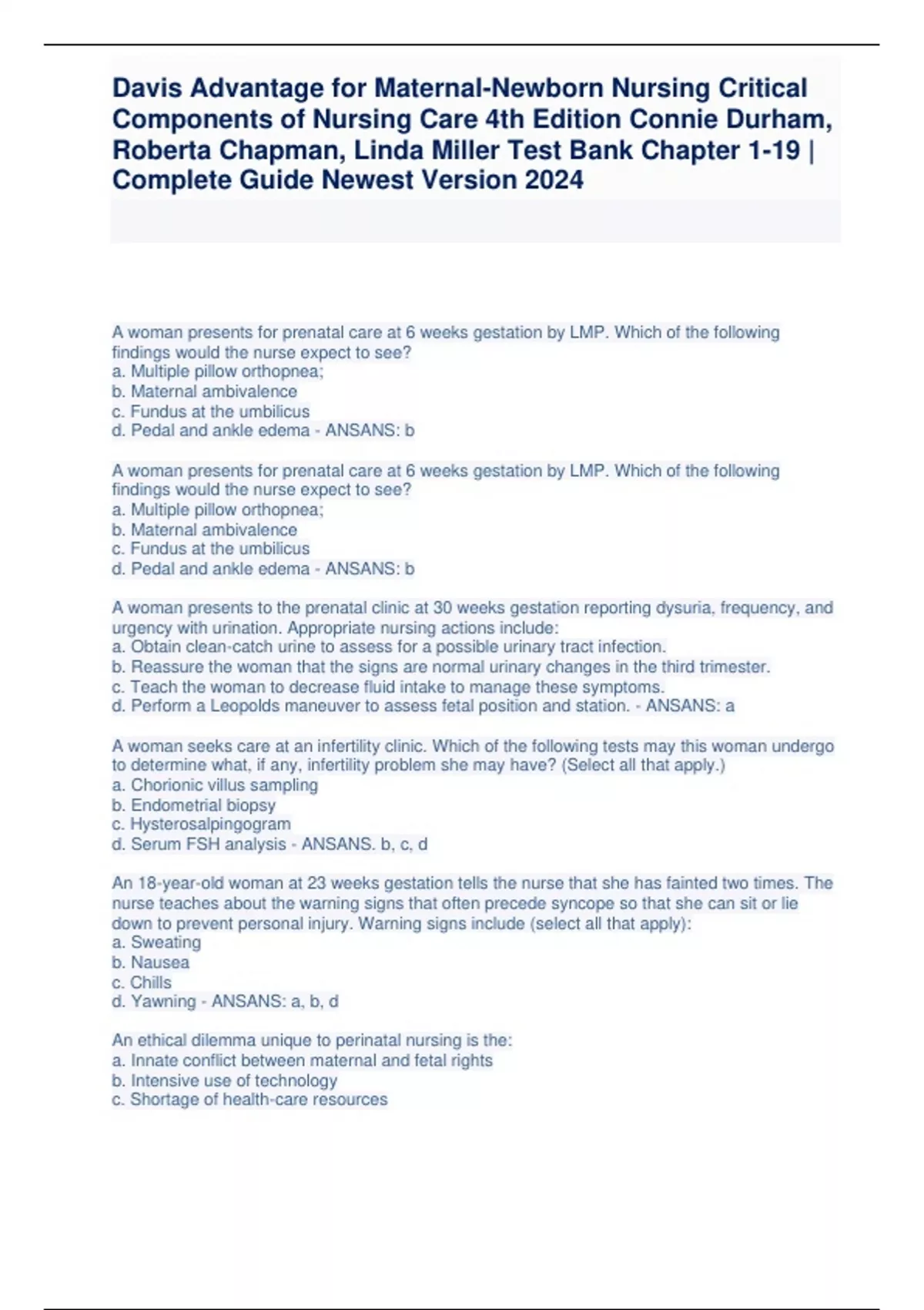 Roberta Chapman, Linda Miller Test Bank Chapter 1-19 |