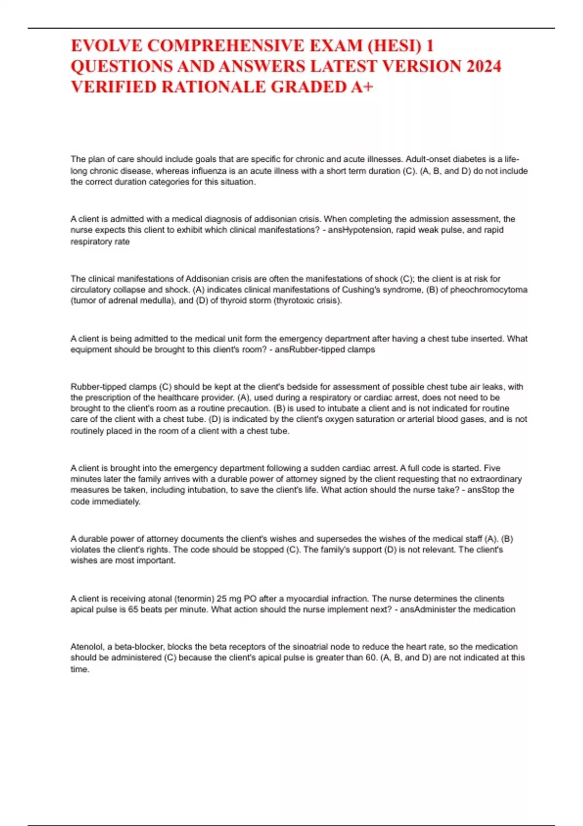 EVOLVE COMPREHENSIVE EXAM (HESI) 1 QUESTIONS AND ANSWERS LATEST VERSION 2024