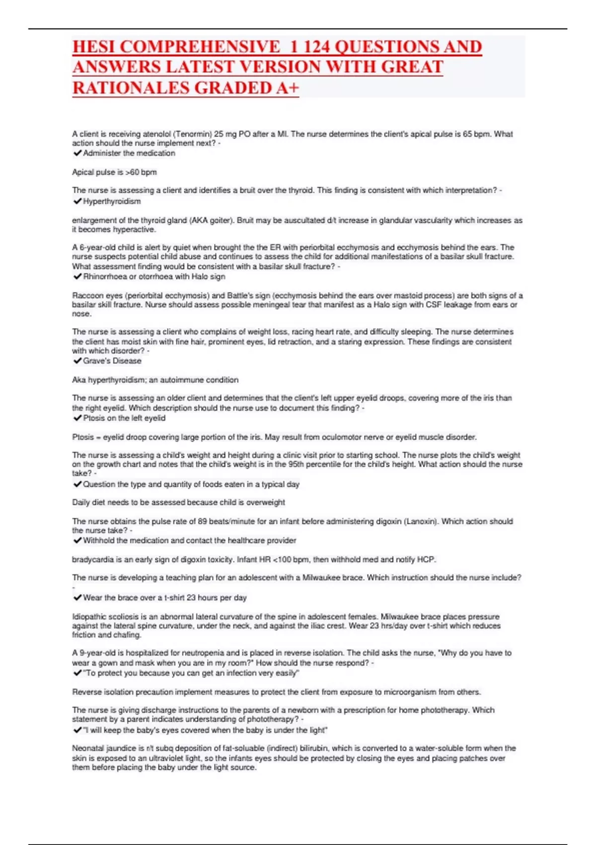 HESI COMPREHENSIVE 1 124 QUESTIONS AND ANSWERS LATEST VERSION WITH GREAT