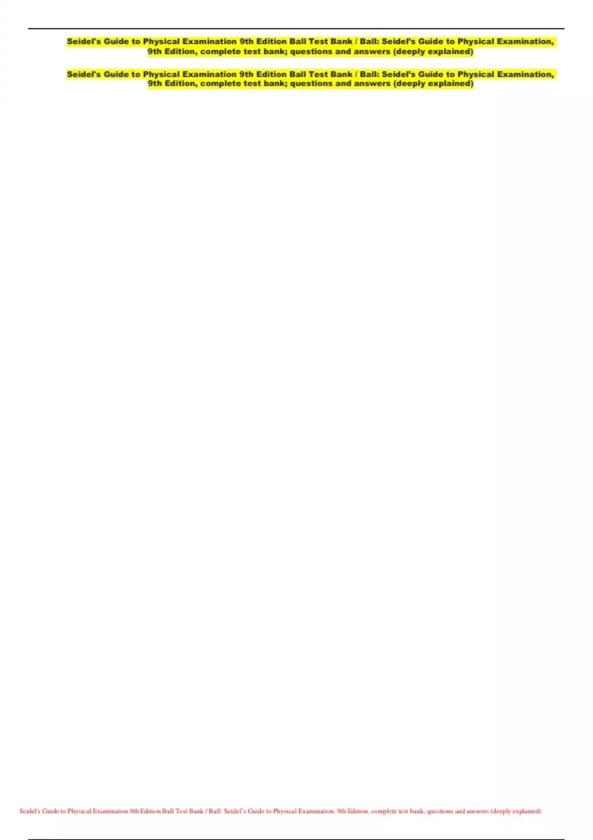 Seidel's Guide to Physical Examination 9th Edition Ball Test Bank / Ball: Seidel’s Guide to Physical Examination, 9th Edition, complete test bank; questions and answers (deeply explained)