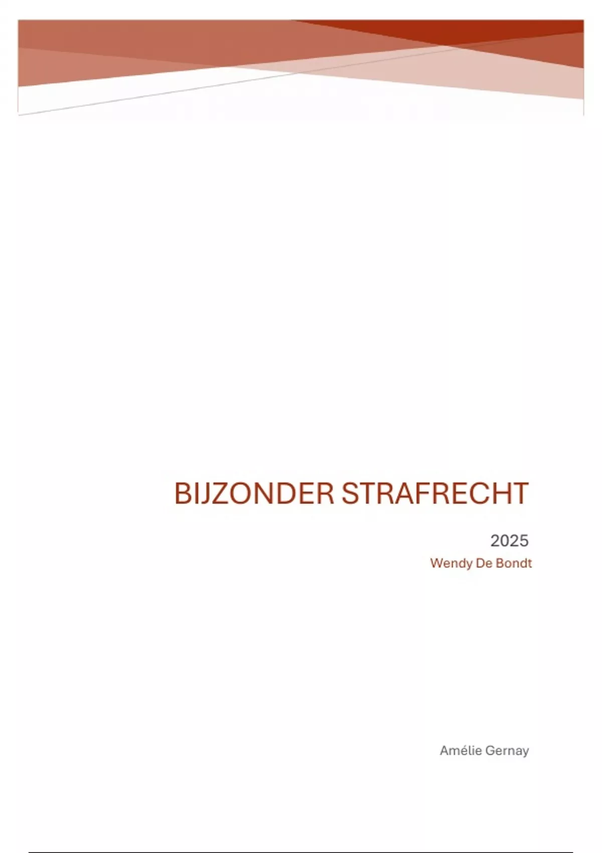 Dit is een samenvatting van het keuzevak bijzonder strafrecht opgenomen in mijn 3e bachelor. Het bevat alle lessen behalve integriteitsschending (corona). Alles wat in de les aan bod kwam zit erin met de powerpoints en alle nodige schema's. Elk vak van Wendy leerde ik adhv notities en was steeds voldoende om te slagen.