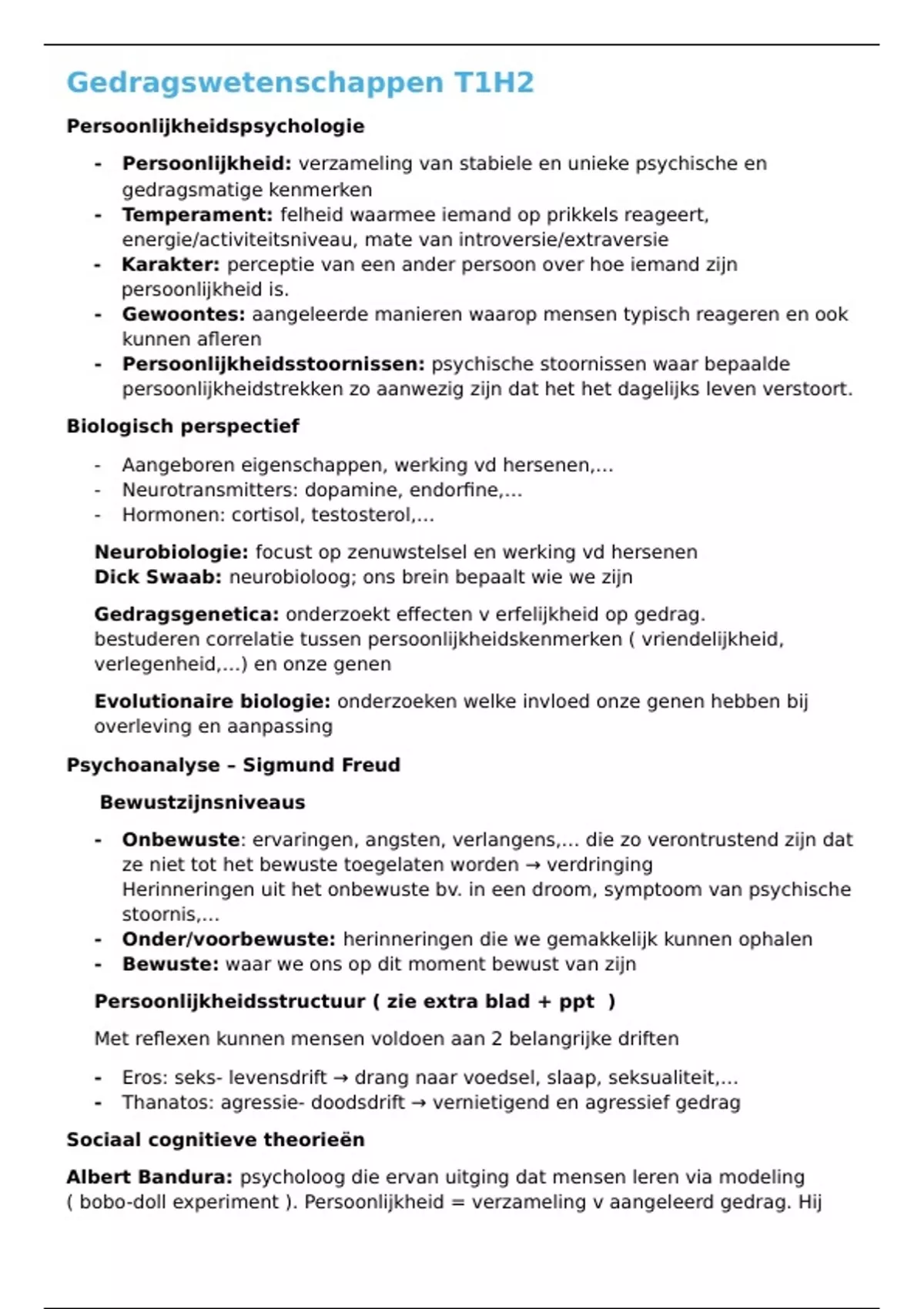 - Persoonlijkheid: verzameling van stabiele en unieke psychische en