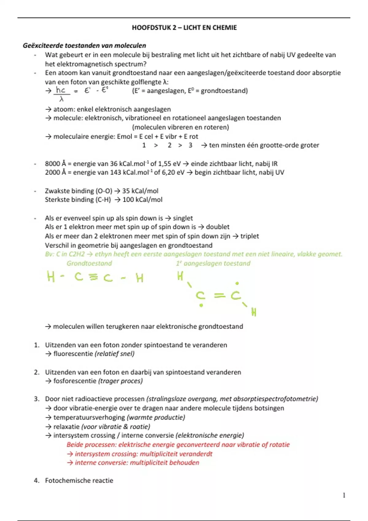 - Wat gebeurt er in een molecule bij bestraling met licht uit het zichtbare of nabij UV gedeelte van