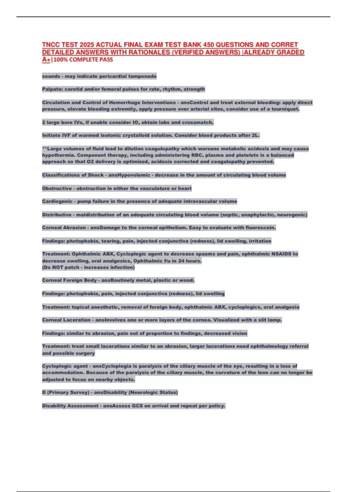 ,TNCC TEST 2025 ACTUAL FINAL EXAM TEST BANK 450 QUESTIONS AND CORRET