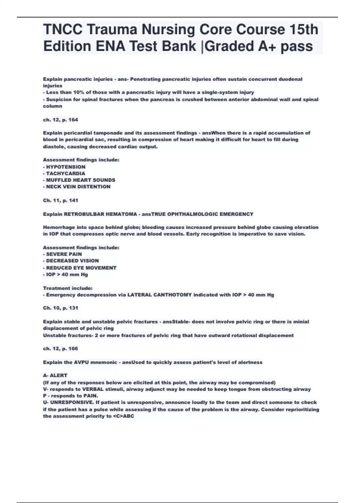 TNCC Trauma Nursing Core Course 15th Edition ENA Test Bank Graded A+ pass correct .pdf 1. Document information