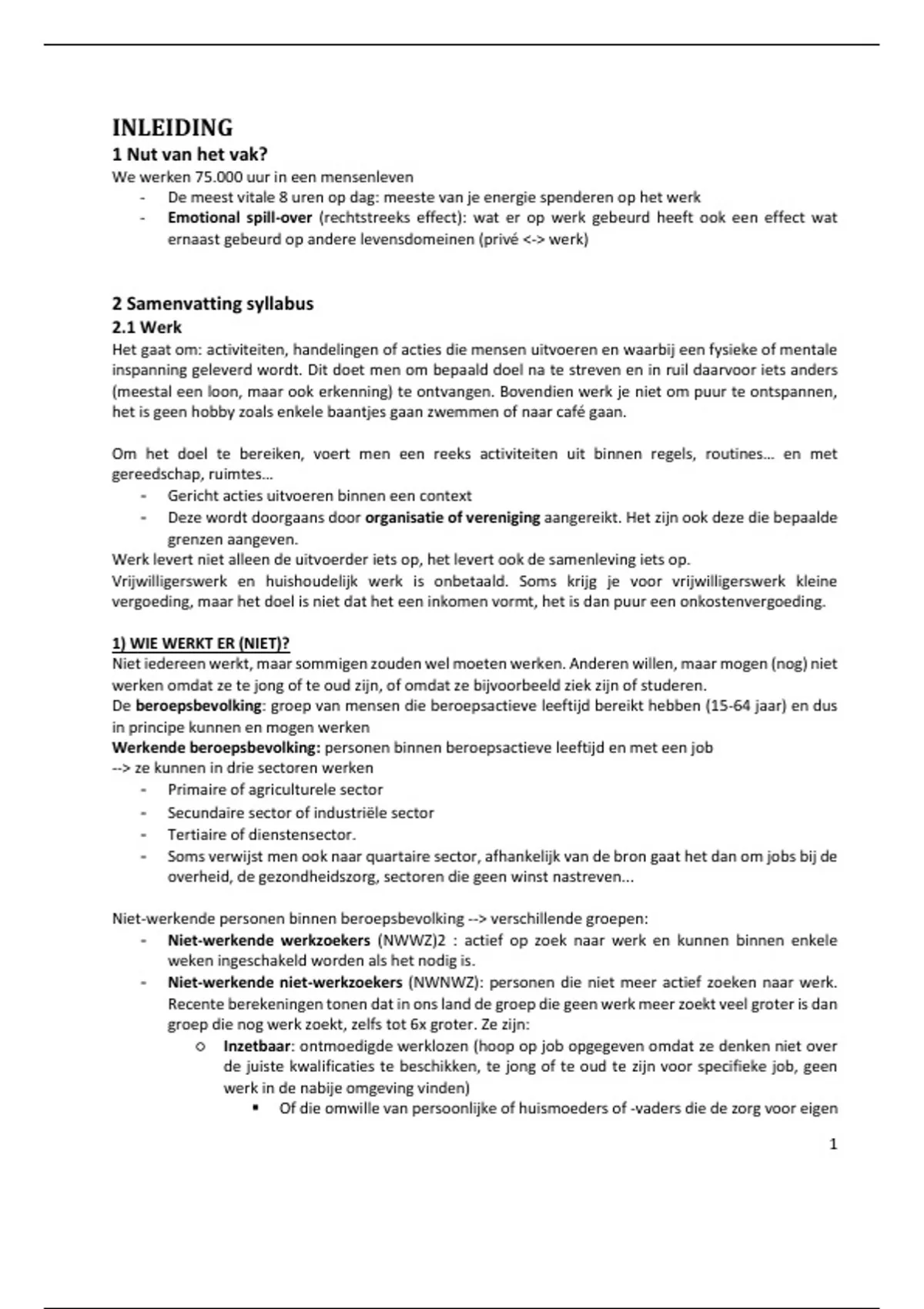 - Daarnaast is werk belangrijke bron van sociale contacten en ervaringen