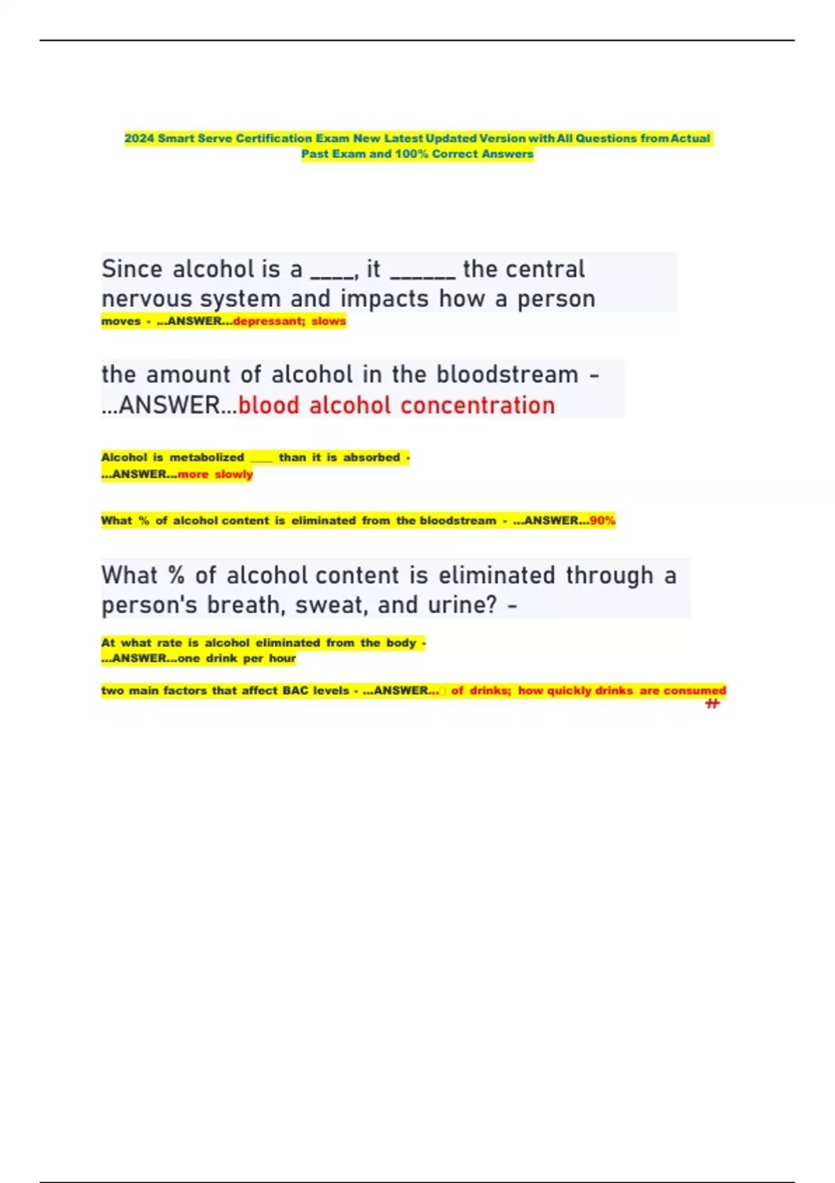 What % of alcohol content is eliminated from the bloodstream - ...ANSWER...90%