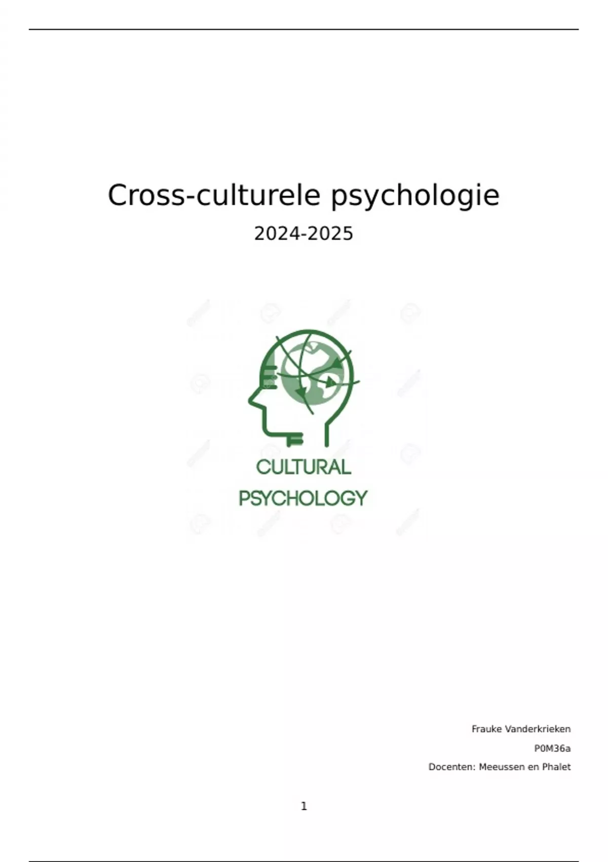 Samenvatting van alle hoofdstukken uit het handboek, aangevuld met slides en lesnotities. (Gastcolleges mbt psychologische aspecten van multiculturele samenleving zijn niet inbegrepen!): je mag me ook altijd persoonlijk een berichtje sturen en zo de samenvatting kopen :))