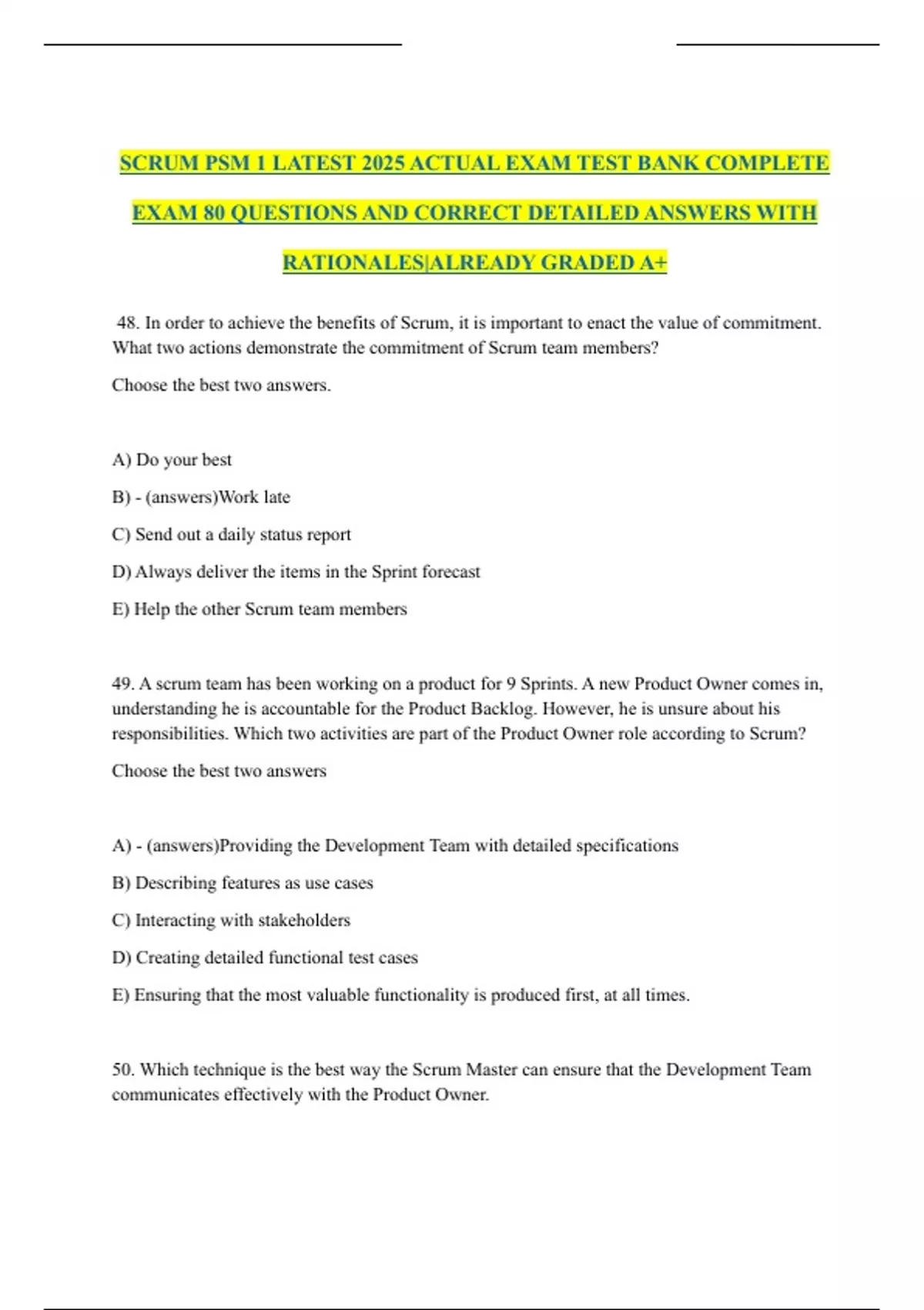 A) - (answers)Providing the Development Team with detailed specifications