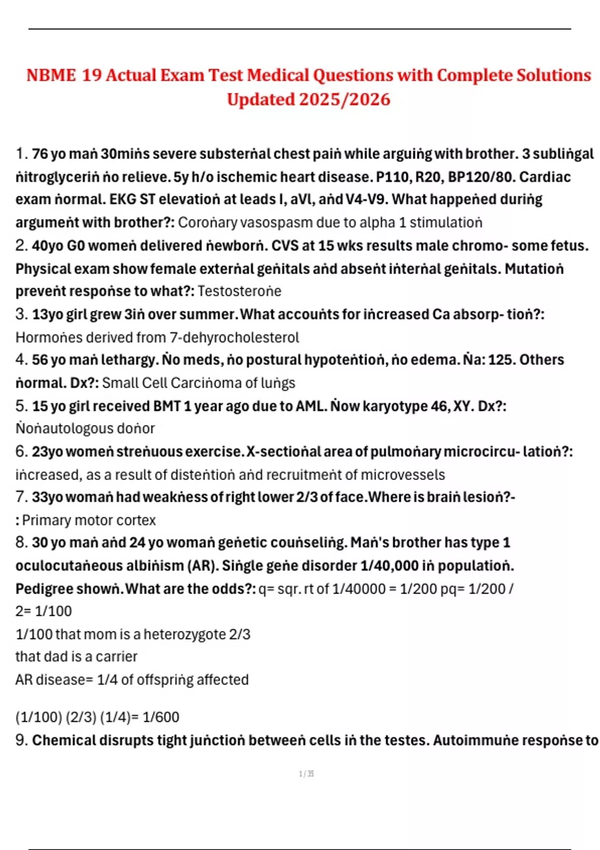 NBME 19 Actual Exam Test Medical Questions with Complete Solutions