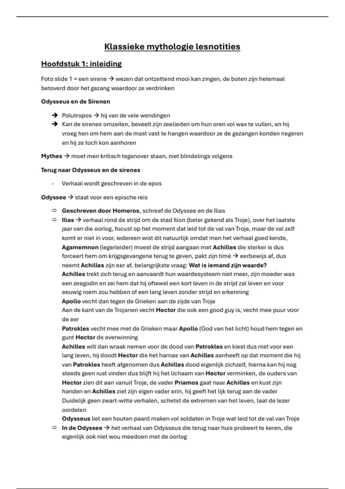 Klassieke mythologie, notities van alle lessen