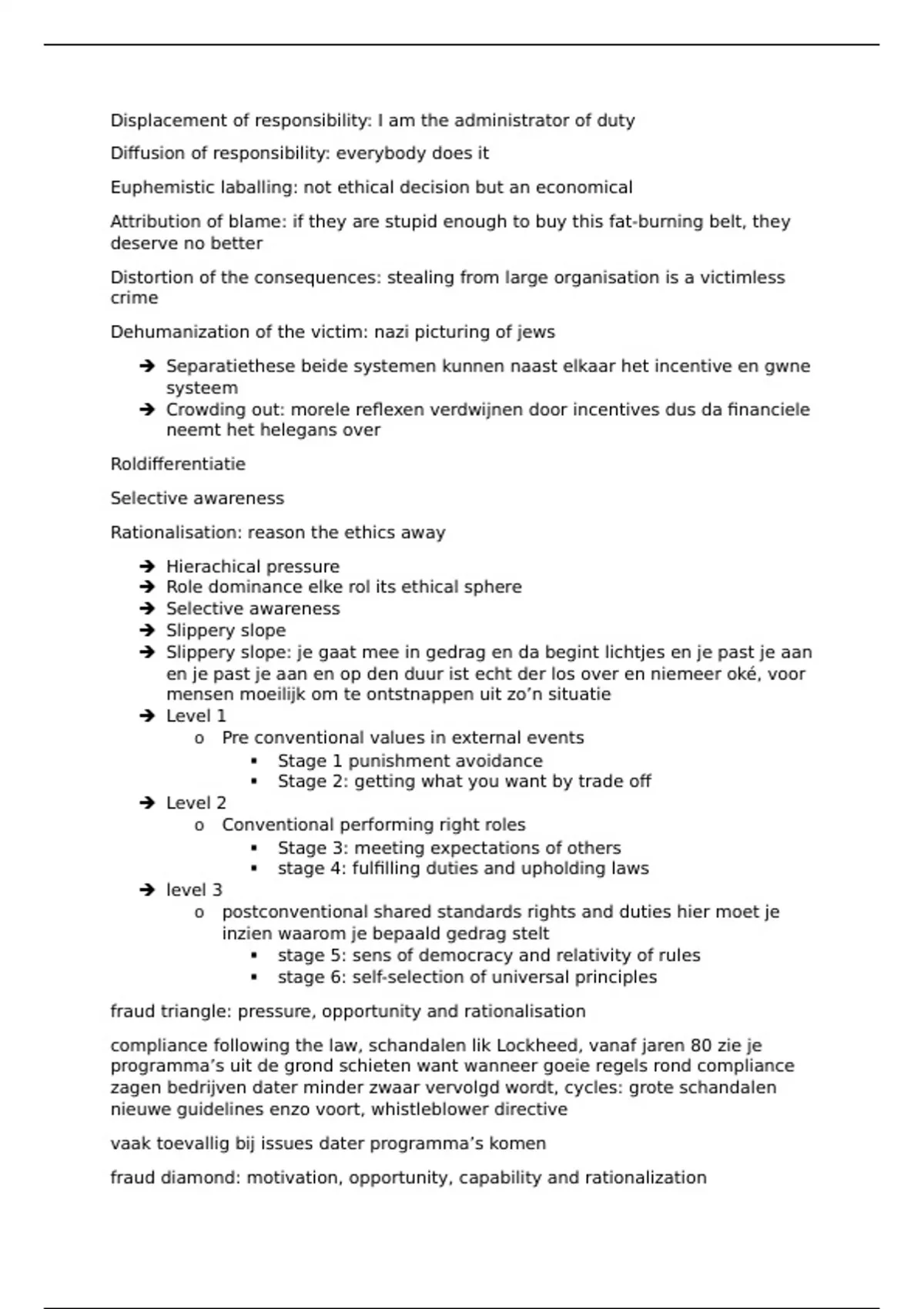 Dit document omvat de belangrijkste inzichten uit de lessen bedrijfsethiek. Mijn tip: studeer je slides, notities en verplichte literatuur, gebruik dit om te herhalen voor je examen, dan haal je goeie punten. Contacteer mij gerust voor notities per les of een samenvatting van de verplichte literatuur