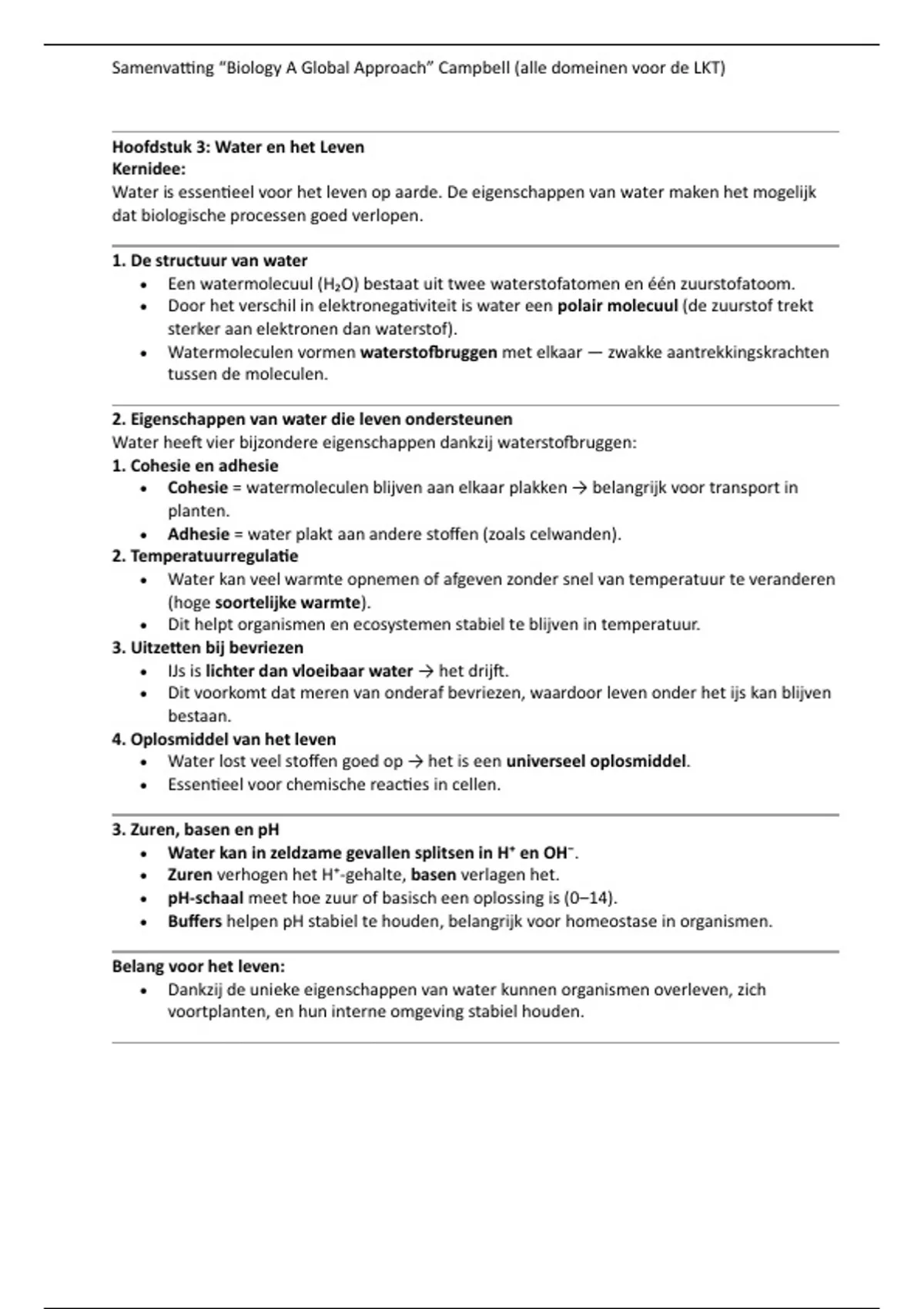 Samenvatting “Biology A Global Approach” Campbell (alle domeinen voor de LKT)