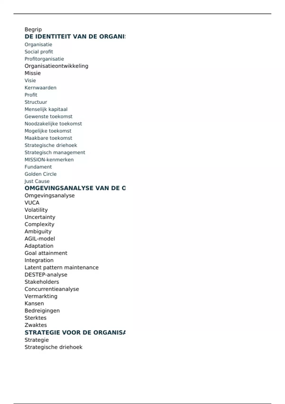STRATEGIE VOOR DE ORGANISATIE