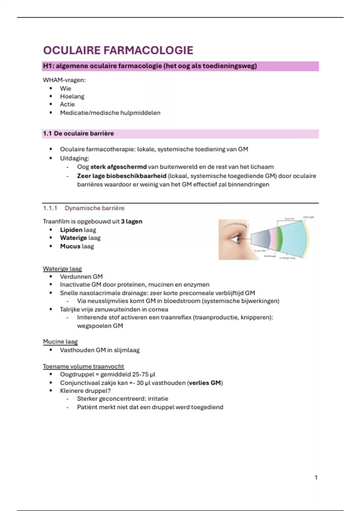 H1: algemene oculaire farmacologie (het oog als toedieningsweg)
