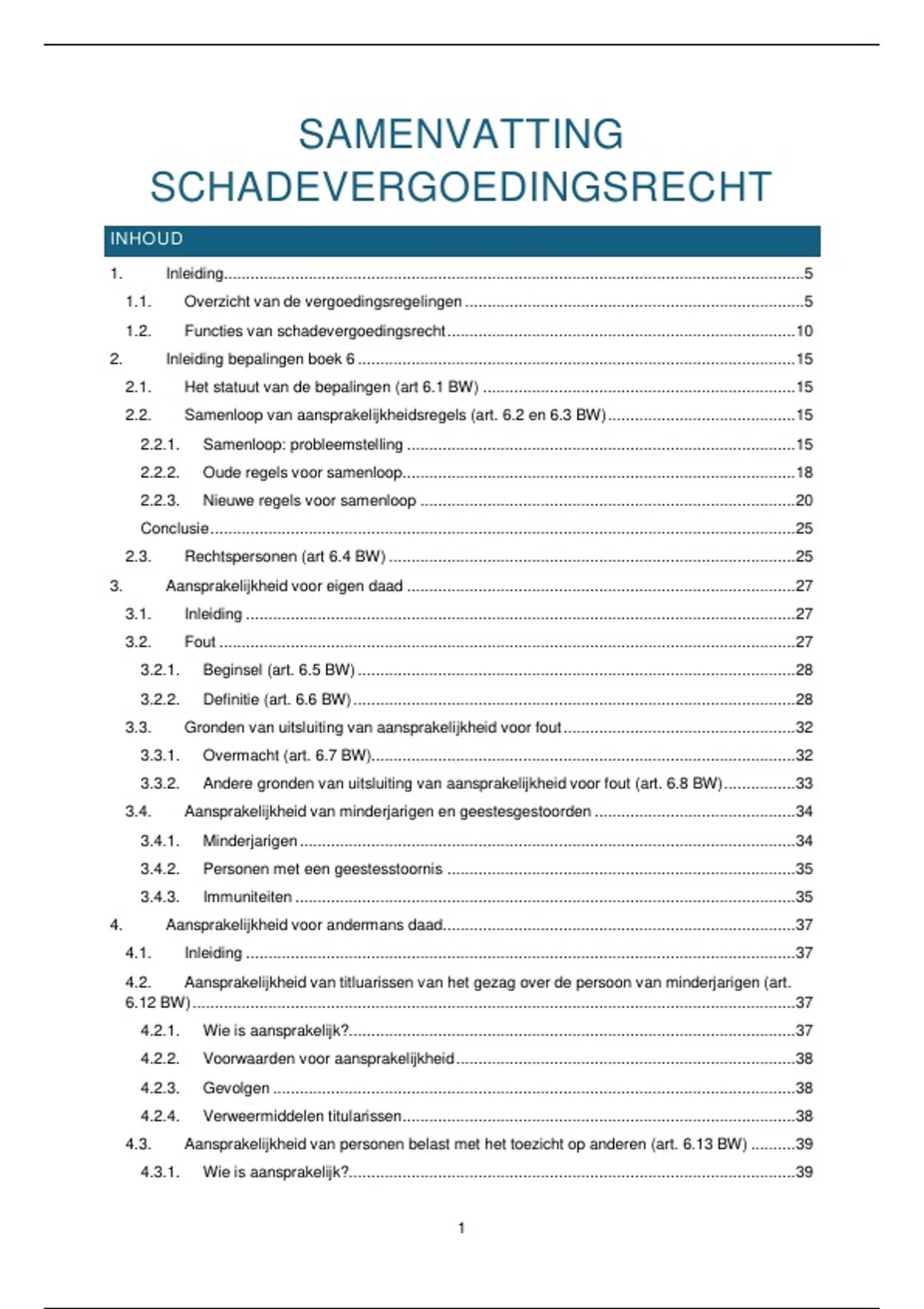 4. Aansprakelijkheid voor andermans daad............................................................................... 37
