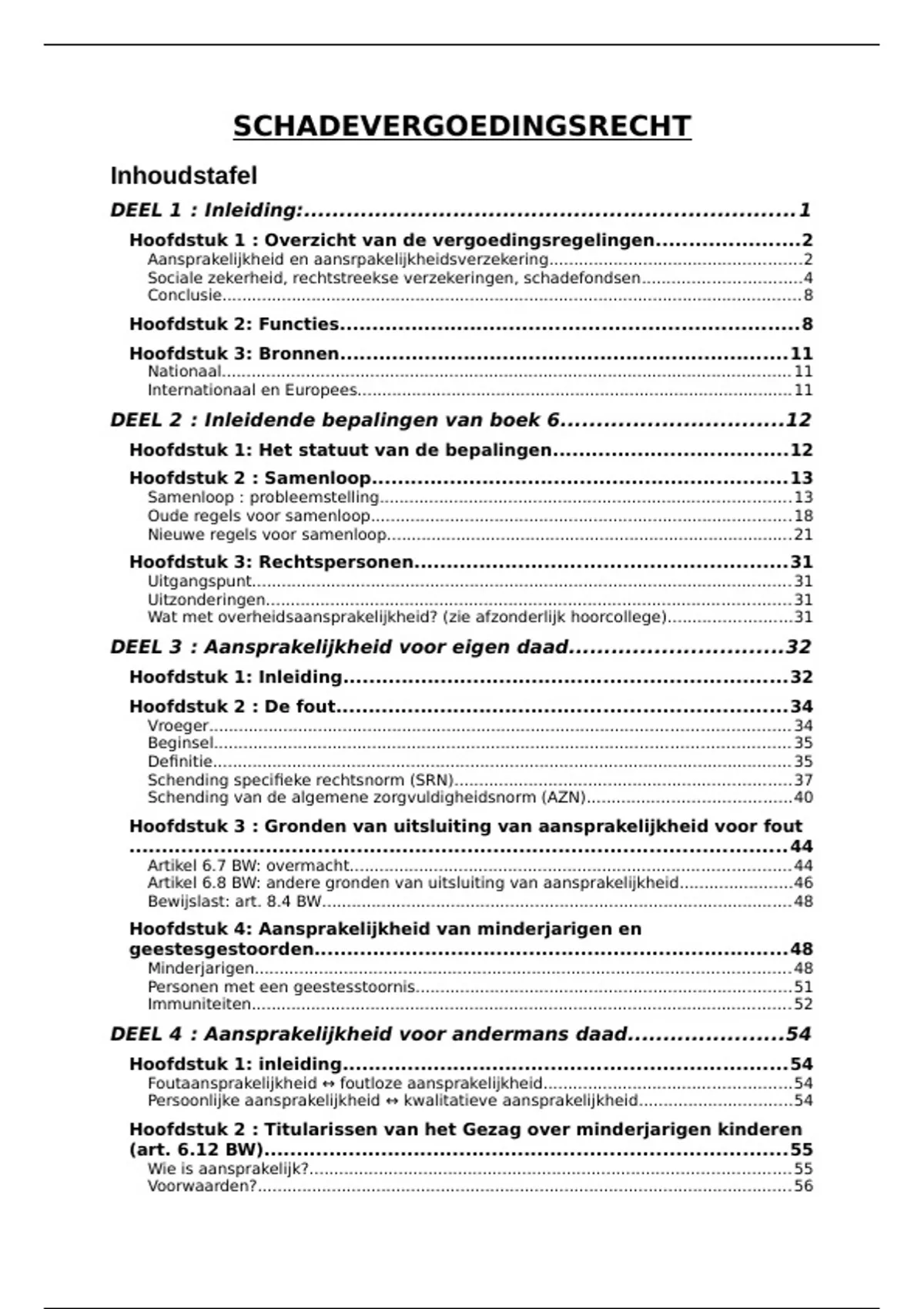 Samenvatting Schadevergoedingsrecht (14/20 behaald 1ste zit)