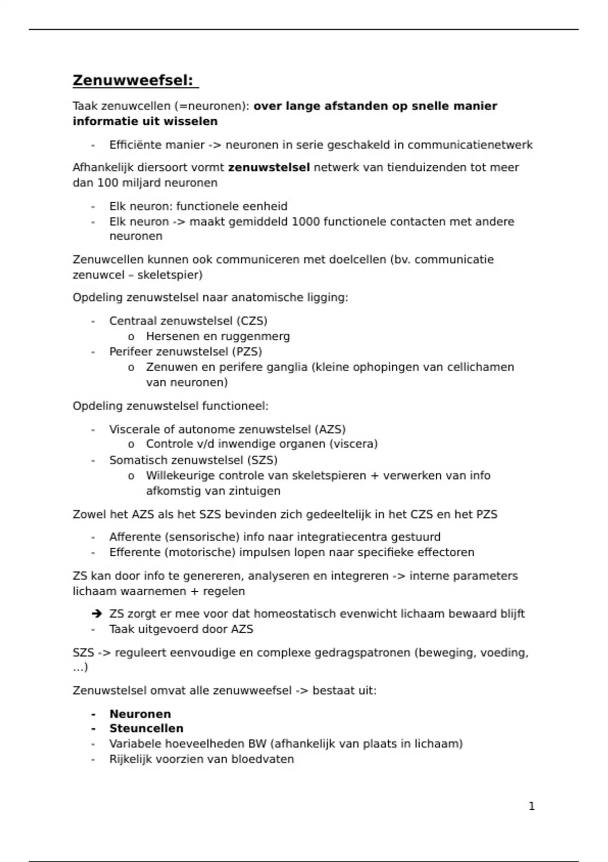 Zenuwstelsel omvat alle zenuwweefsel -> bestaat uit: