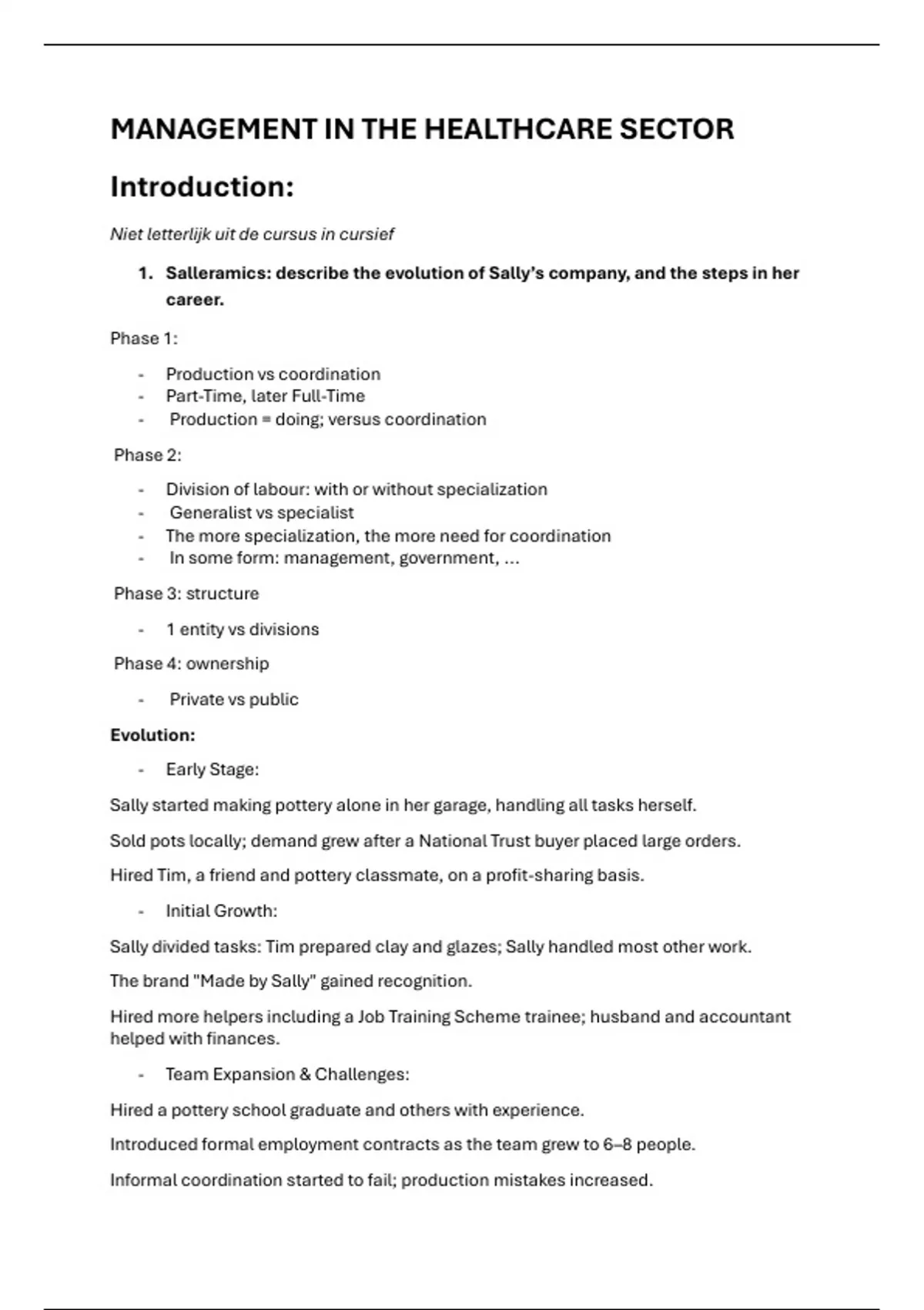 1. Salleramics: describe the evolution of Sally’s company, and the steps in her