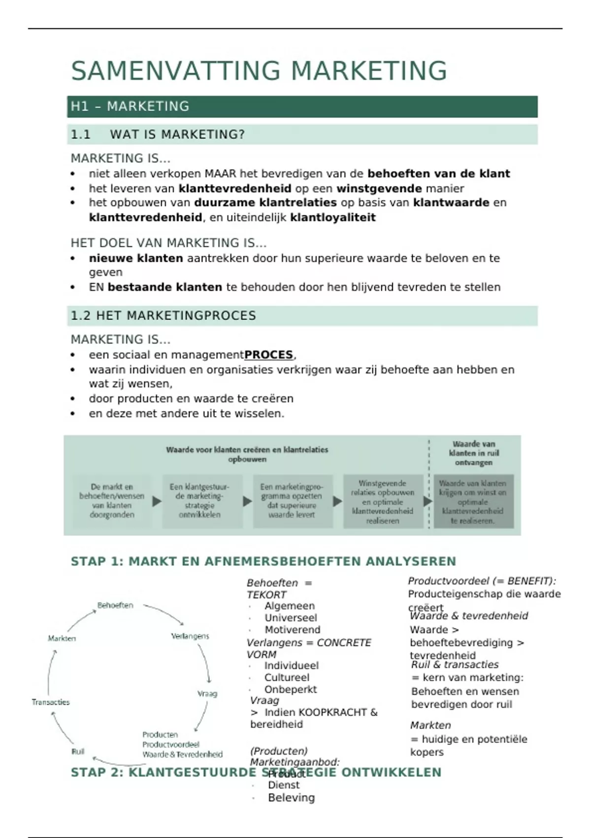 Duidelijke samenvatting marketing 1e bachelor bedrijsmanagement