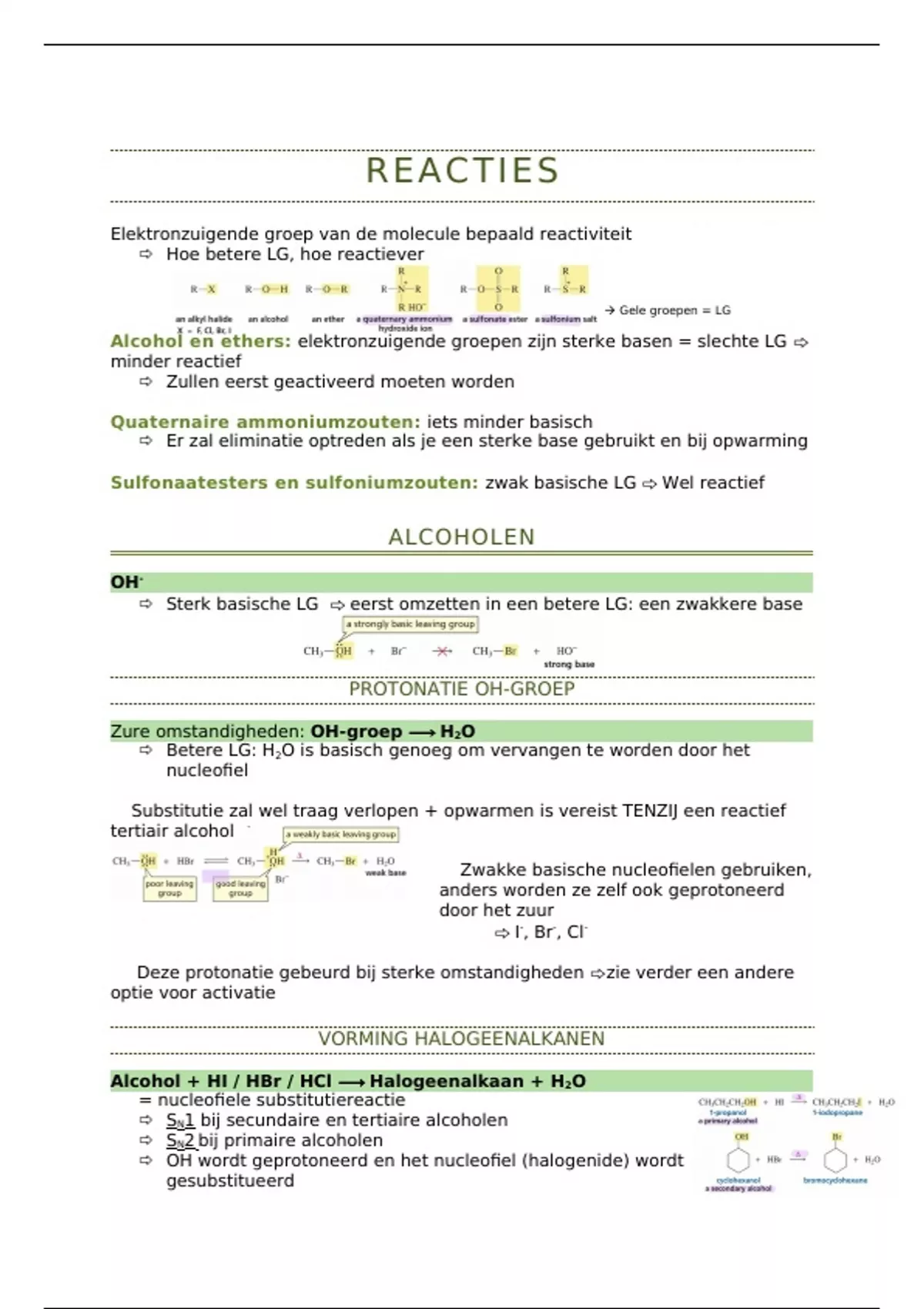 Volledige samenvatting van de slides en de cursus. Bevat alle informatie voor het examen. Inclusief afbeeldingen en reactiemechanismen. Als er vragen zijn, mag je mij altijd contacteren!