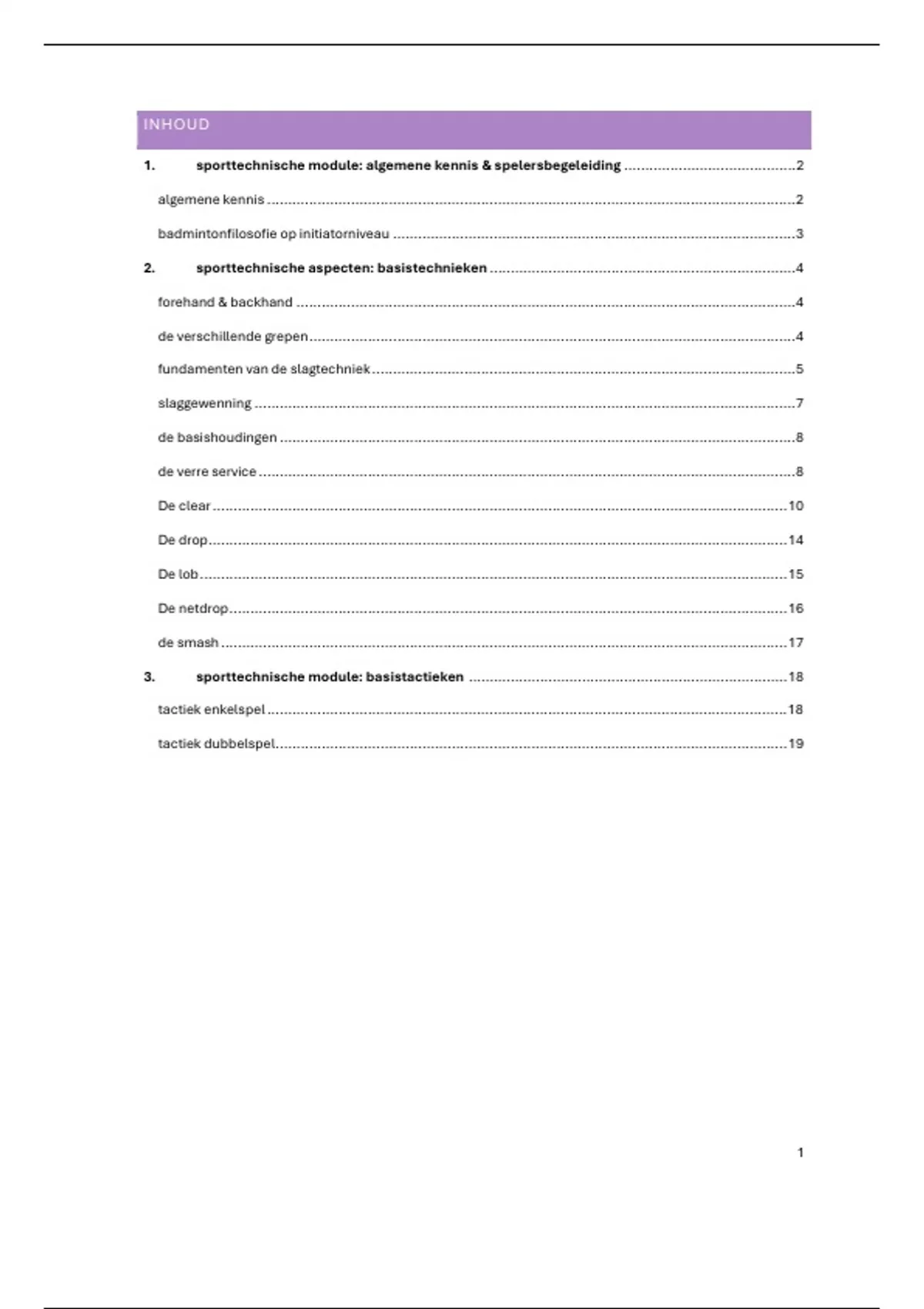 1. sporttechnische module: algemene kennis & spelersbegeleiding .........................................2