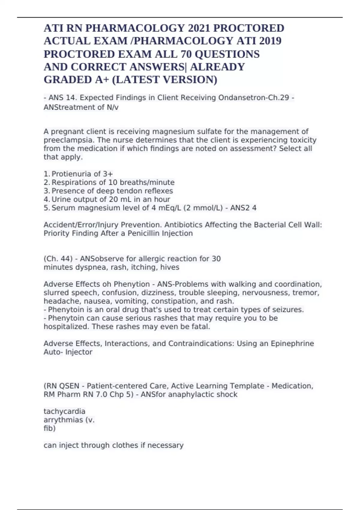,ATI RN PHARMACOLOGY 2021 PROCTORED