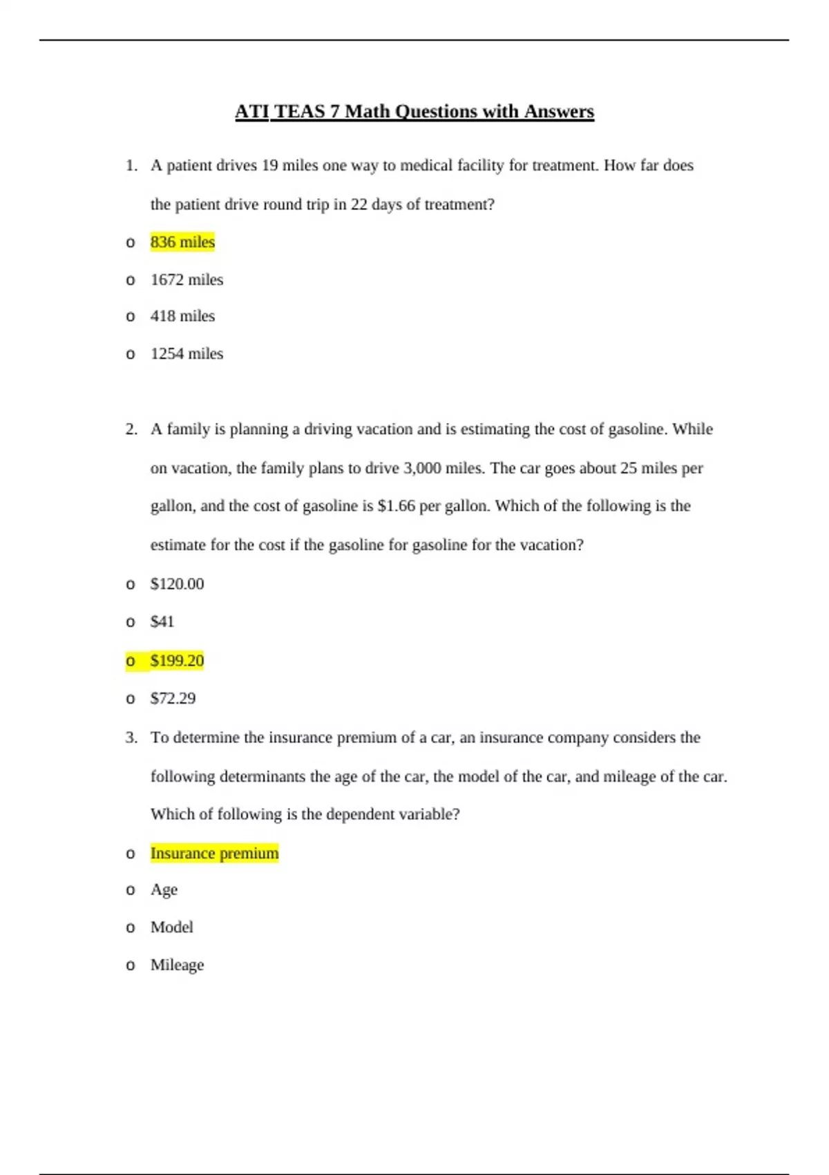 ATI TEAS 7 Math Questions with Answers LATEST UPDATE 2023.docx