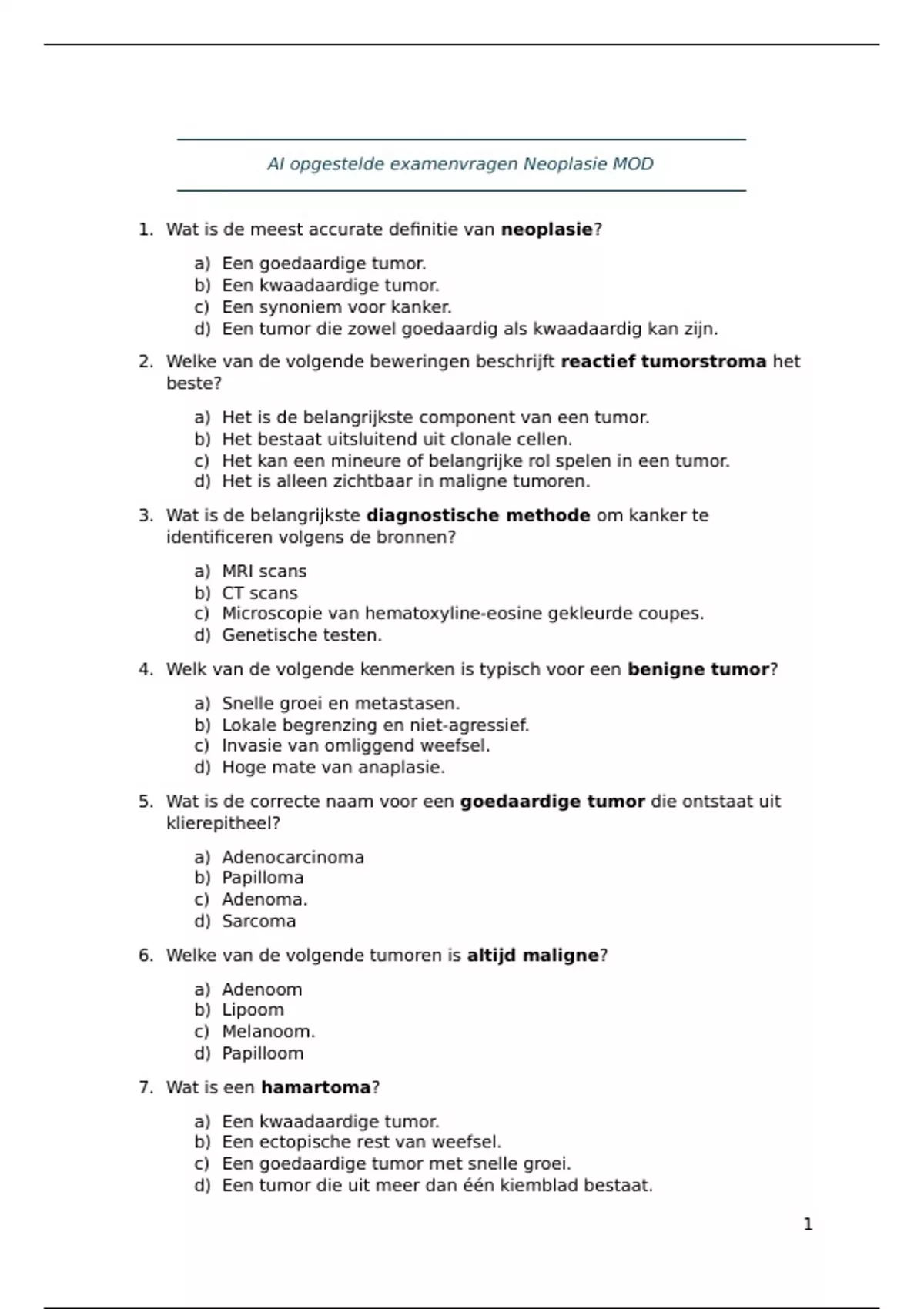 5. Wat is de correcte naam voor een goedaardige tumor die ontstaat uit