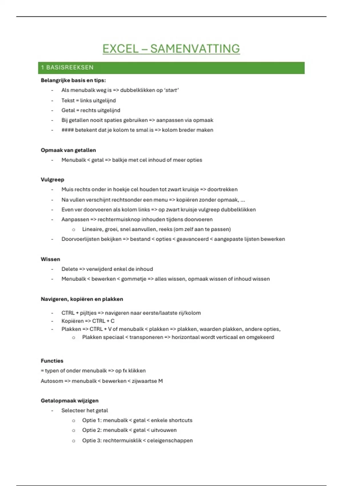 - CTRL + pijltjes => navigeren naar eerste/laatste rij/kolom