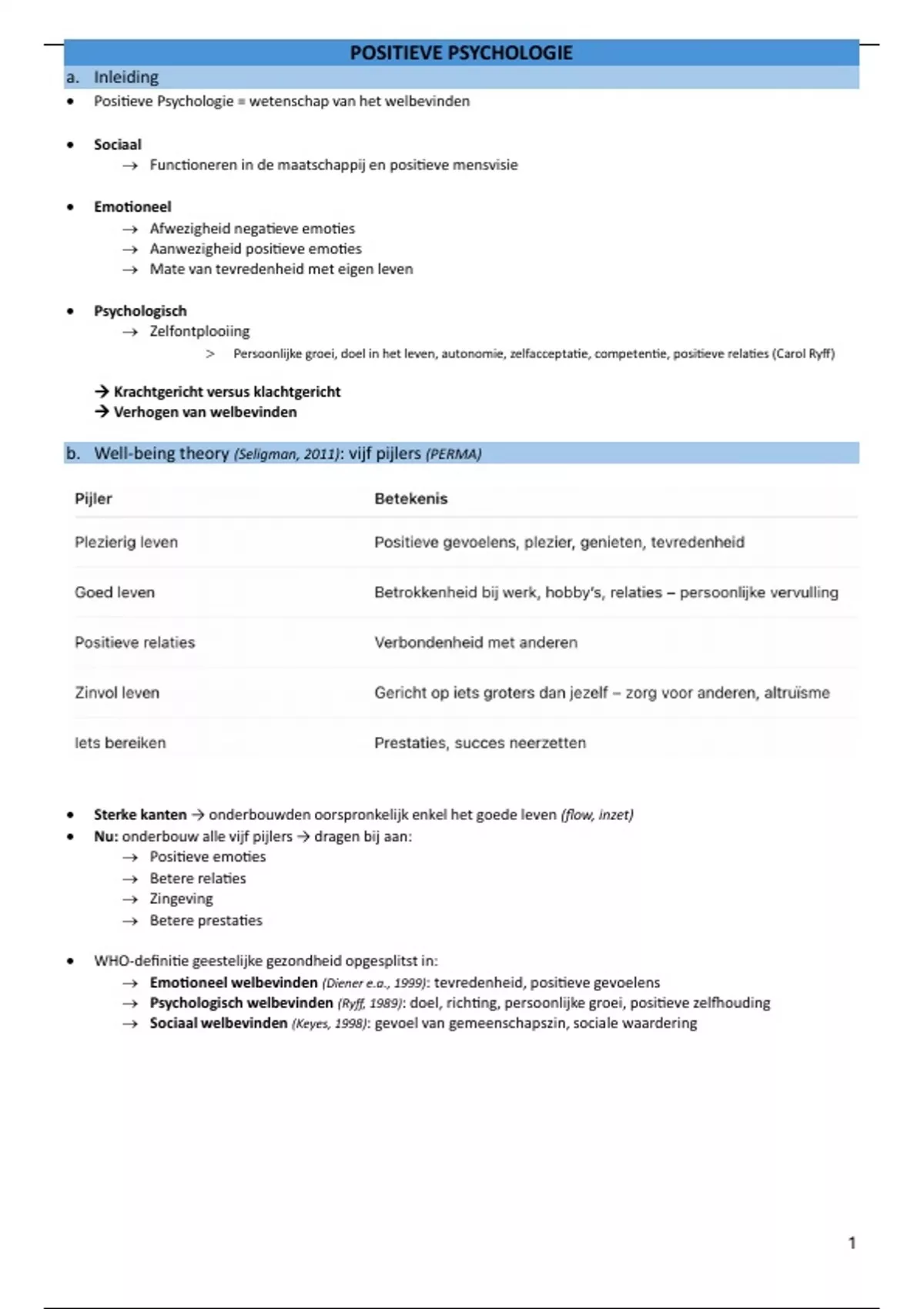 b. Well-being theory (Seligman, 2011): vijf pijlers (PERMA)