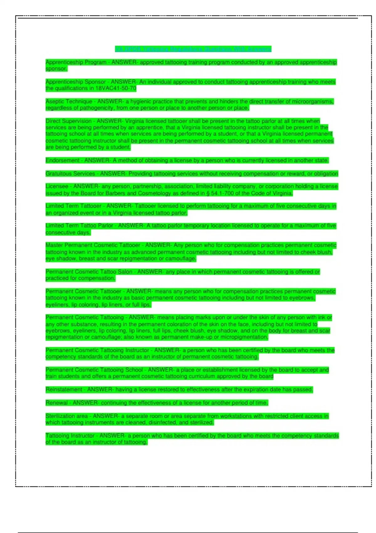 VA DPOR Tattooing Regulations Questions With Answers.pdf