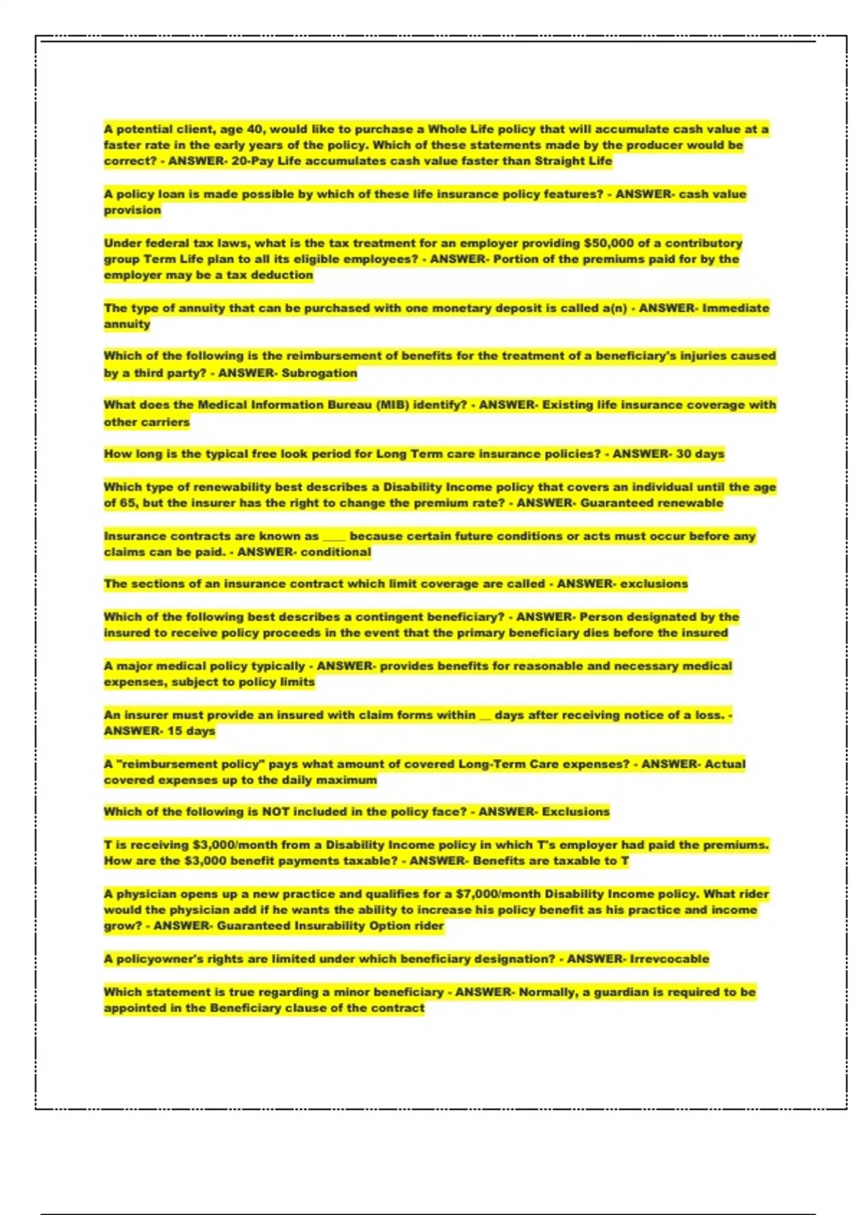 Xcell Testing Solutions (Life & Health) Final 150 Question Practice Exam With Answers.
