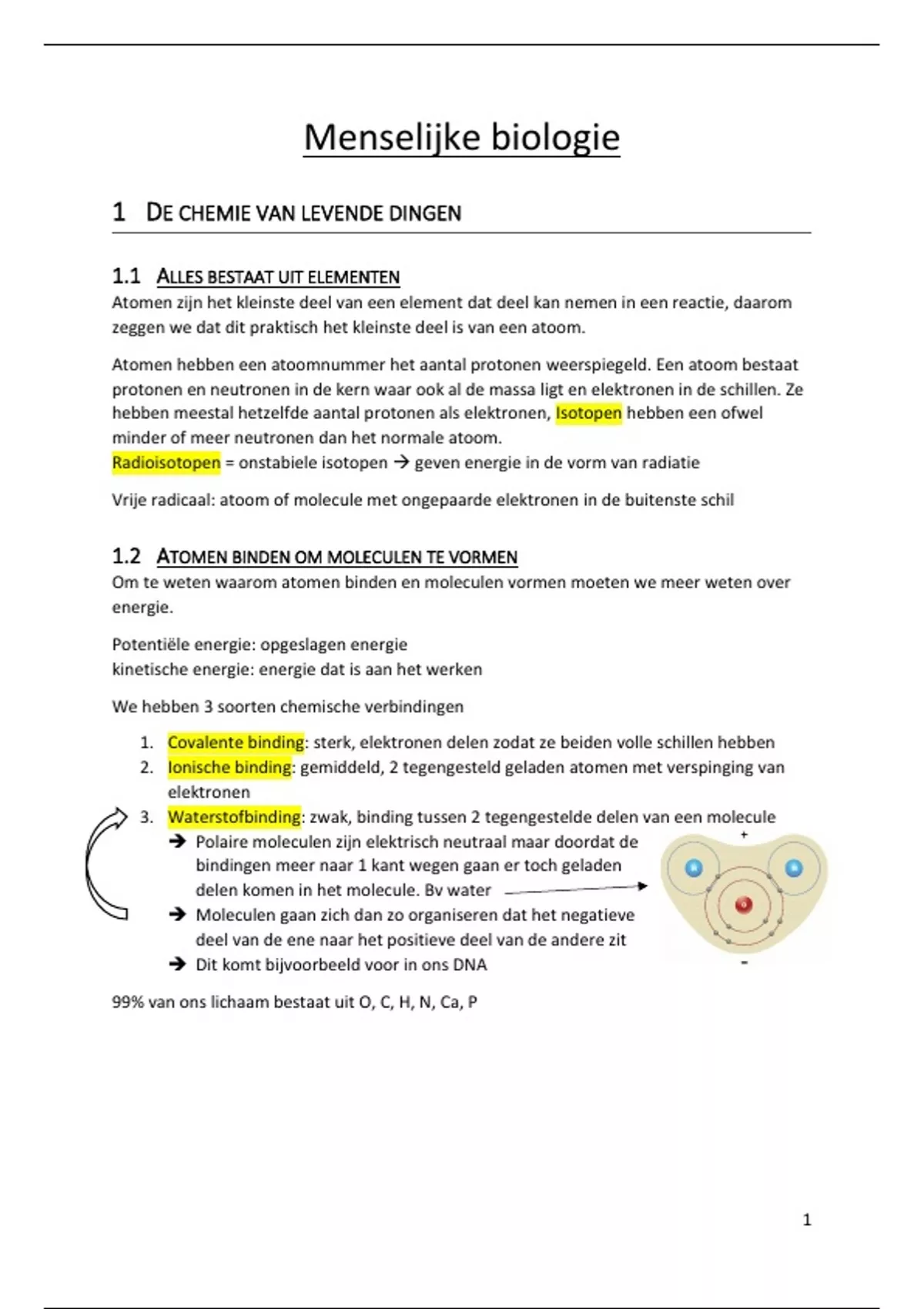 1 DE CHEMIE VAN LEVENDE DINGEN