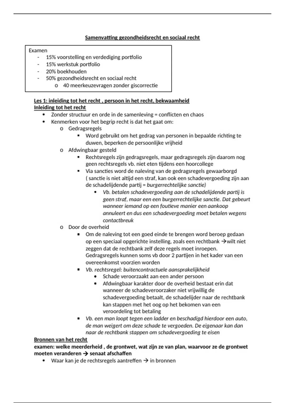 volledige samenvatting sociaal recht en gezondheidsrecht met alles uit de slides van de lessen + zijn zelfgeschreven handboek