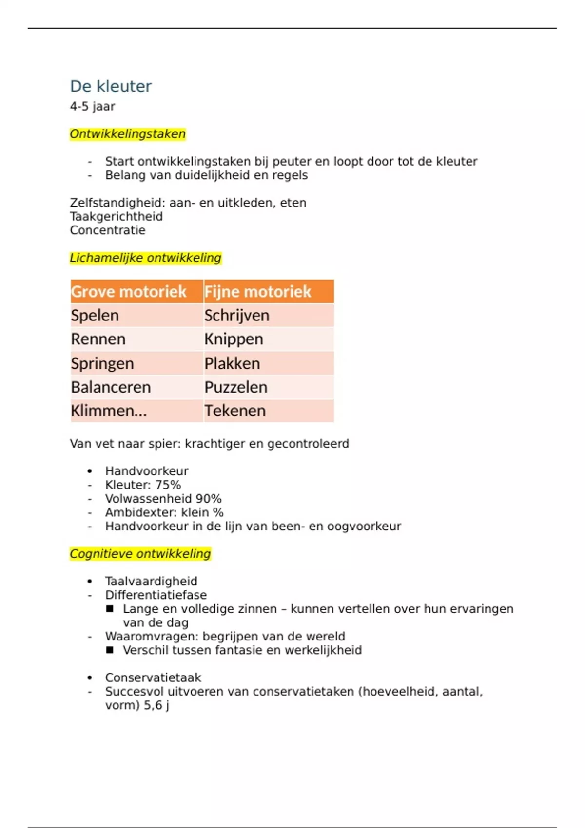 - Start ontwikkelingstaken bij peuter en loopt door tot de kleuter