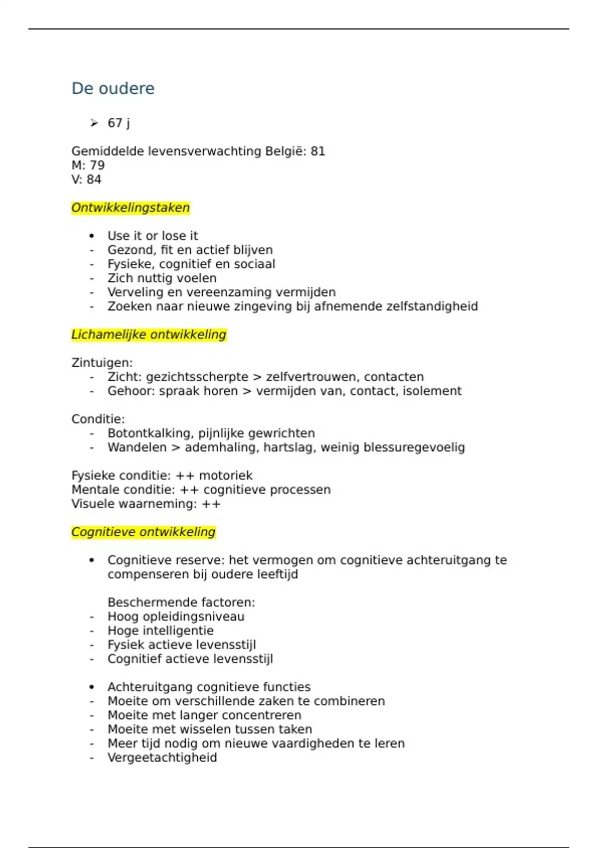Een diepgaande, volledige samenvatting over de oudere, gebaseerd op de cursus van levenslooppsychologie.