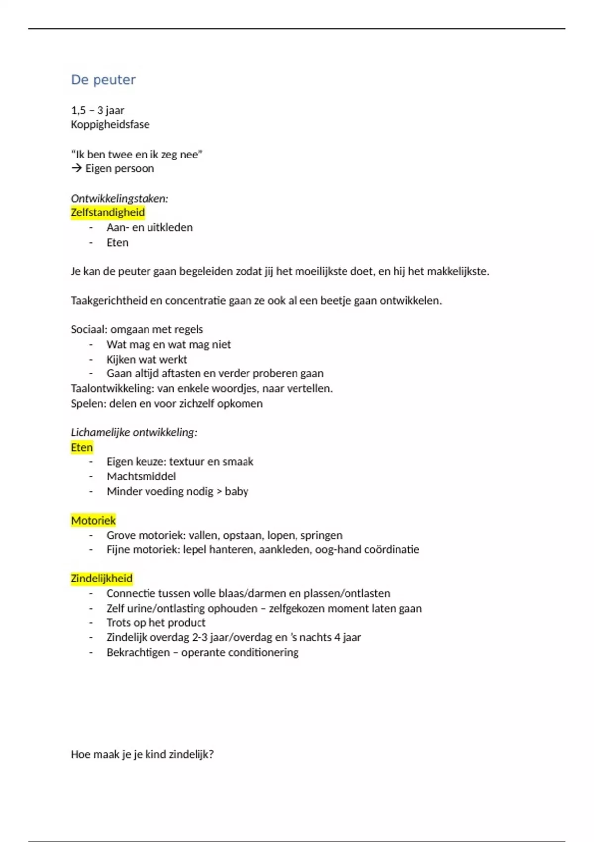 - Zindelijk overdag 2-3 jaar/overdag en ’s nachts 4 jaar