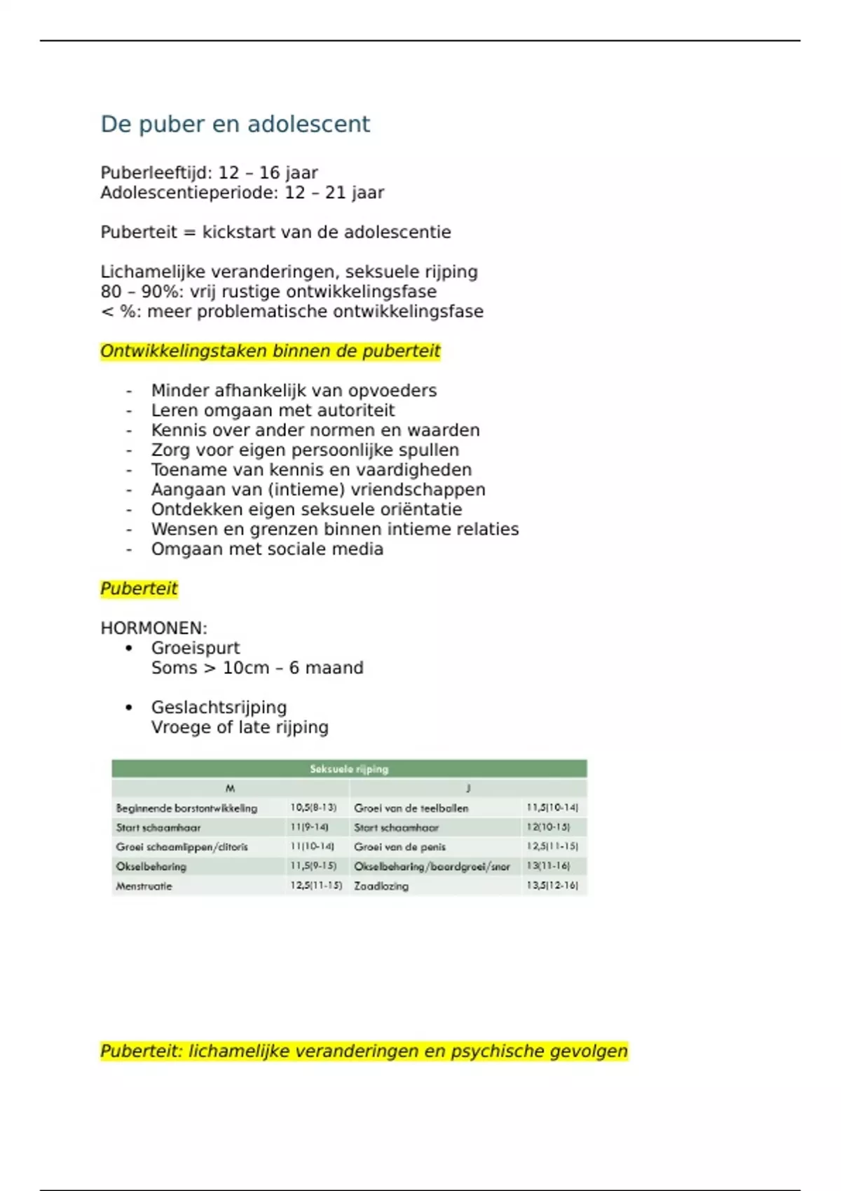 Puberteit: lichamelijke veranderingen en psychische gevolgen