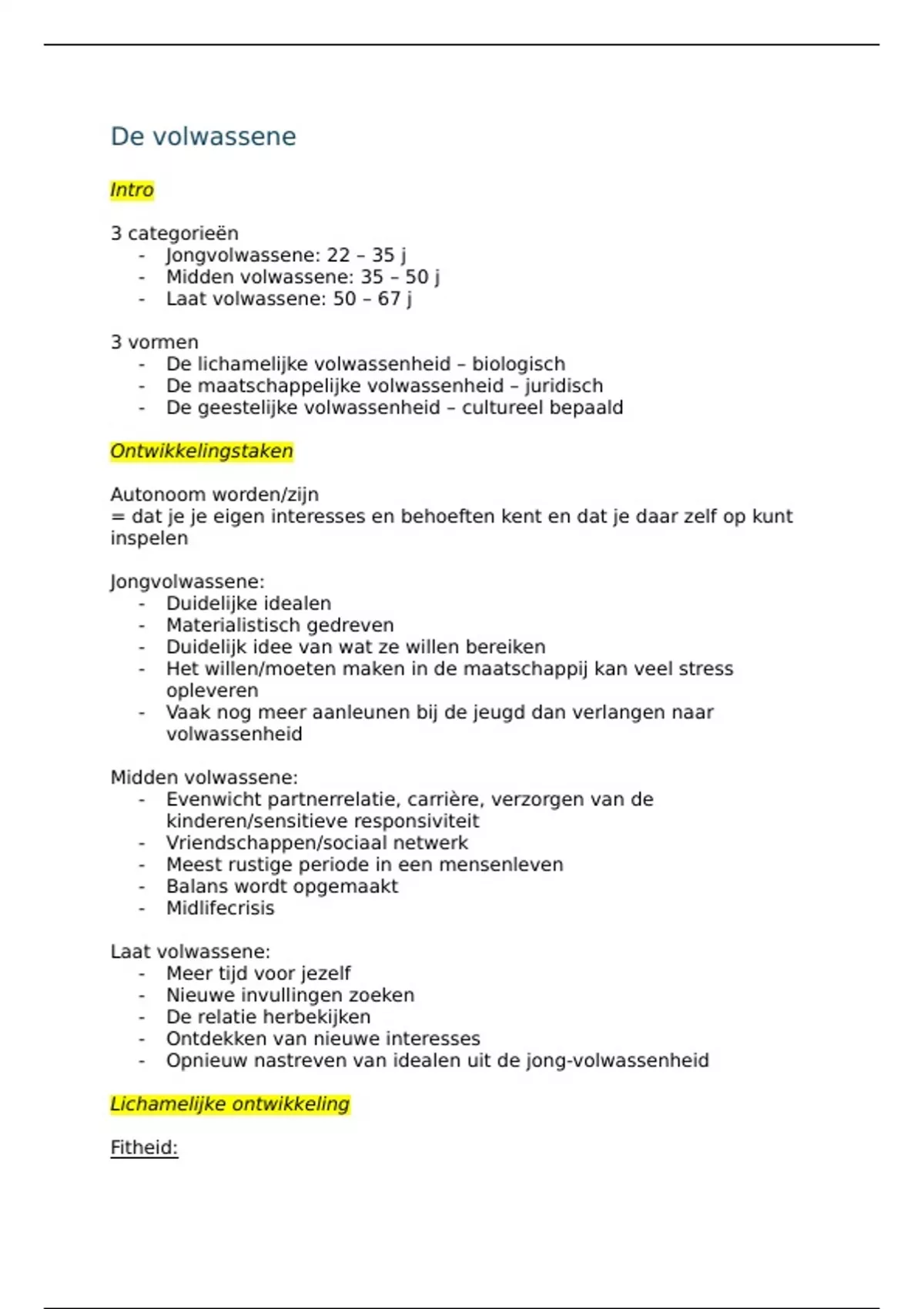 - Midden volwassene: 35 – 50 j
