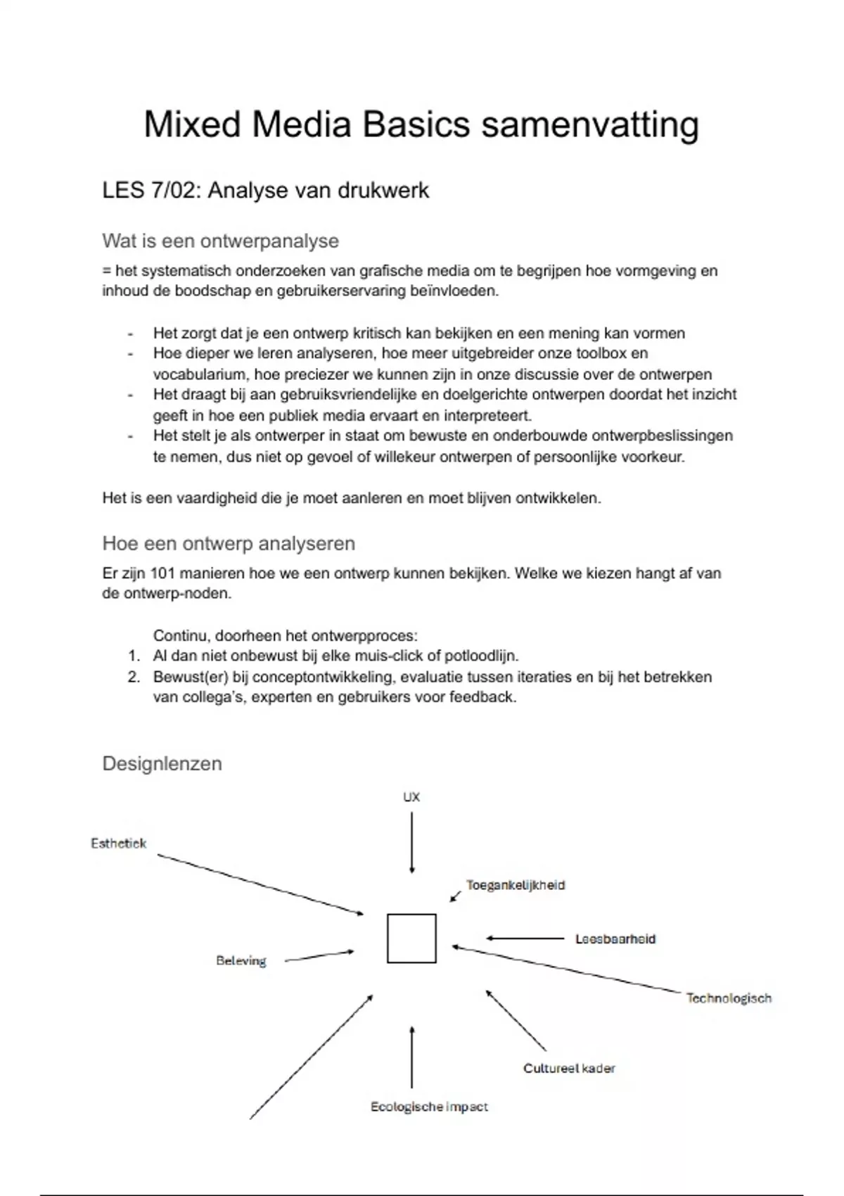 - Het zorgt dat je een ontwerp kritisch kan bekijken en een mening kan vormen