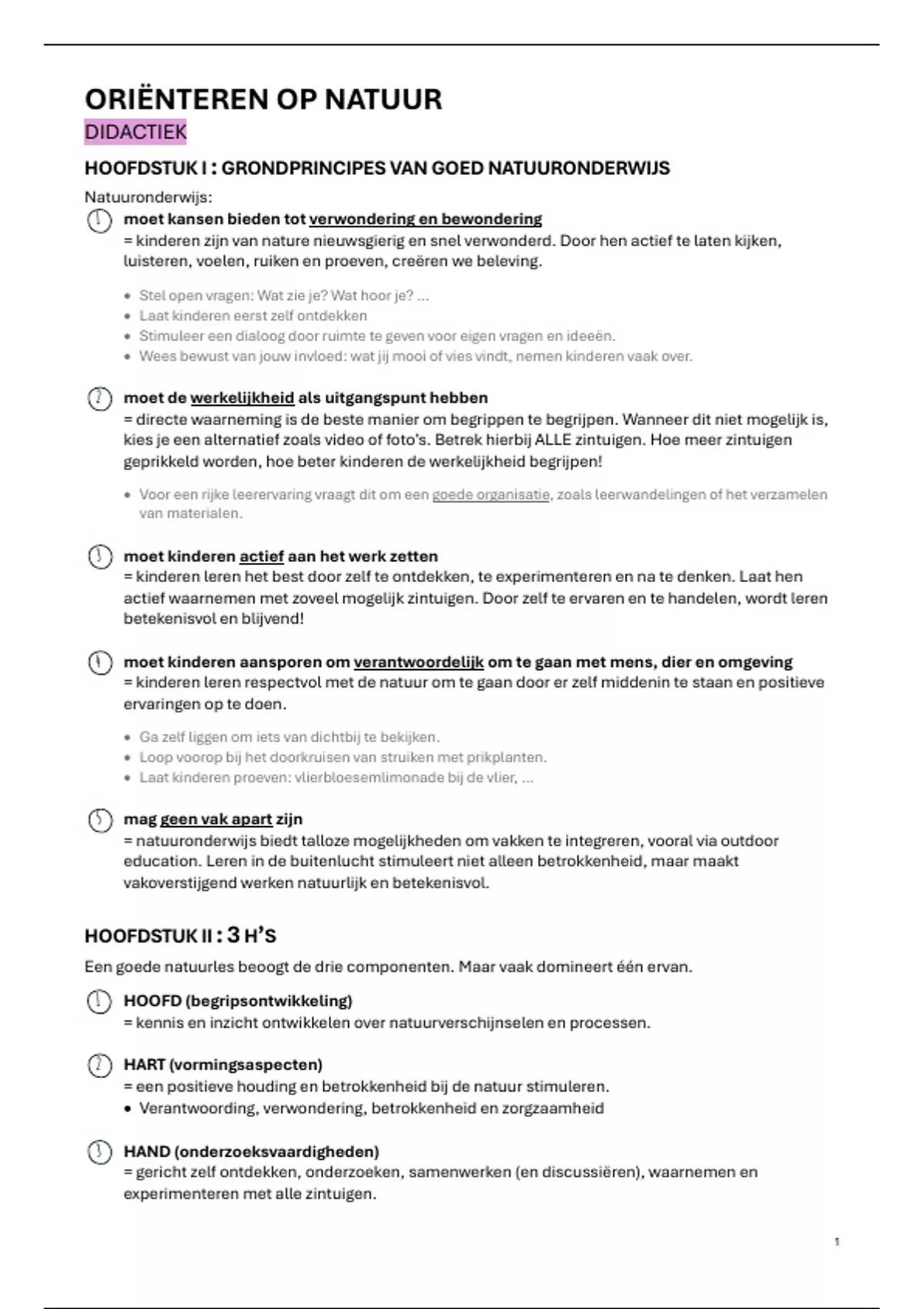 HOOFDSTUK I : GRONDPRINCIPES VAN GOED NATUURONDERWIJS