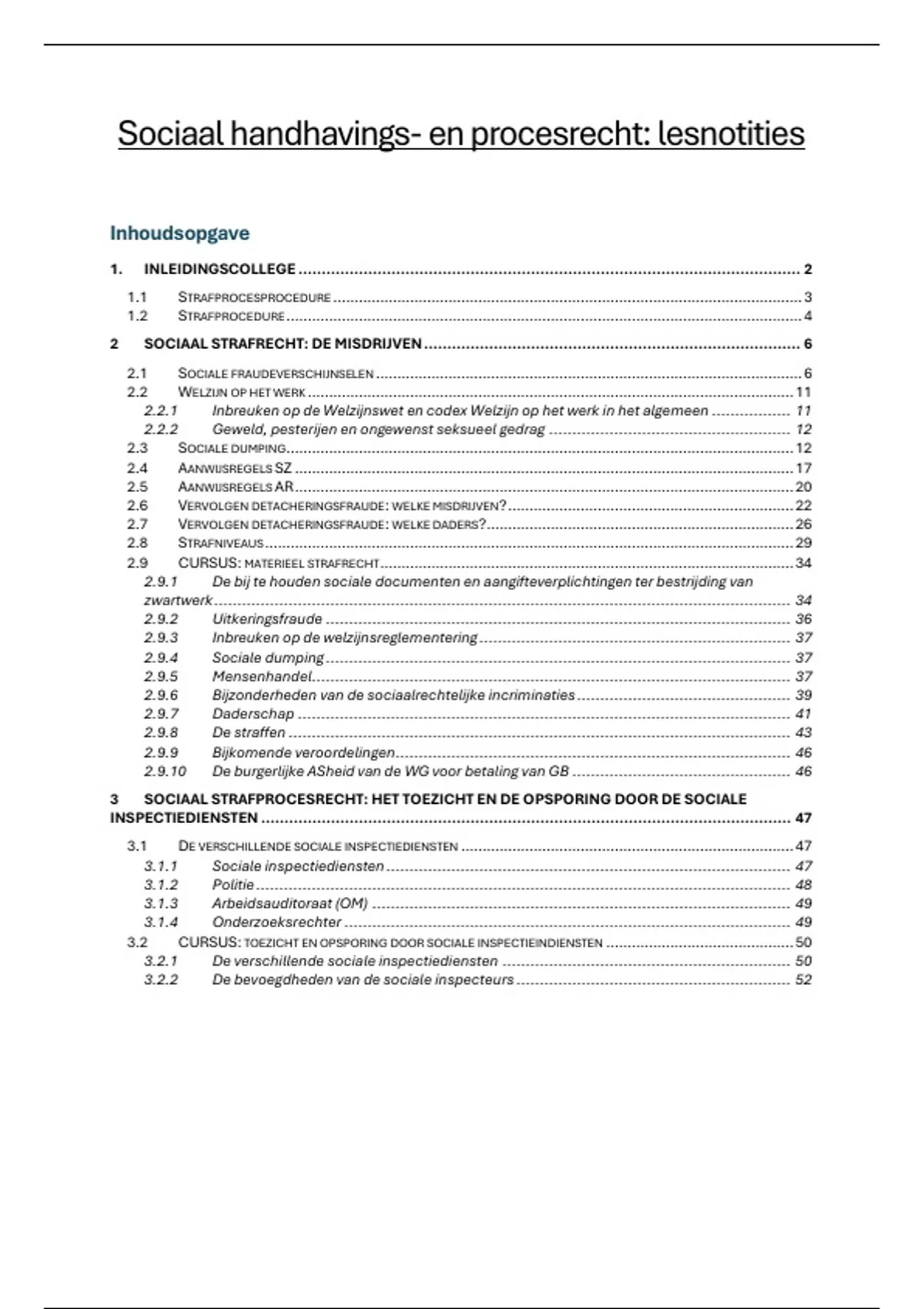 Dit document zijn alle slides en lesnotities van het vak sociaal handhavings- en procesrecht. Wat in de les werd gezegd is het belangrijkste om te kennen voor het examen. Daarnaast heeft de professor Salomez ook 2 cursussen online geplaatst: materieel strafrecht en sociaal strafprocesrecht (toezicht en opsporing door sociale inspectiediensten). Die zijn hier ook in verwerkt. Alsook enkele voorbeeldvragen (dmv AI)