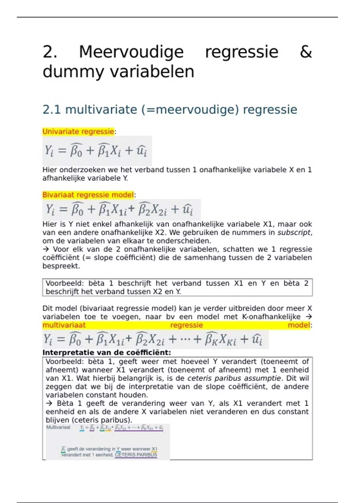 Voorbeeld: bèta 1 beschrijft het verband tussen X1 en Y en bèta 2