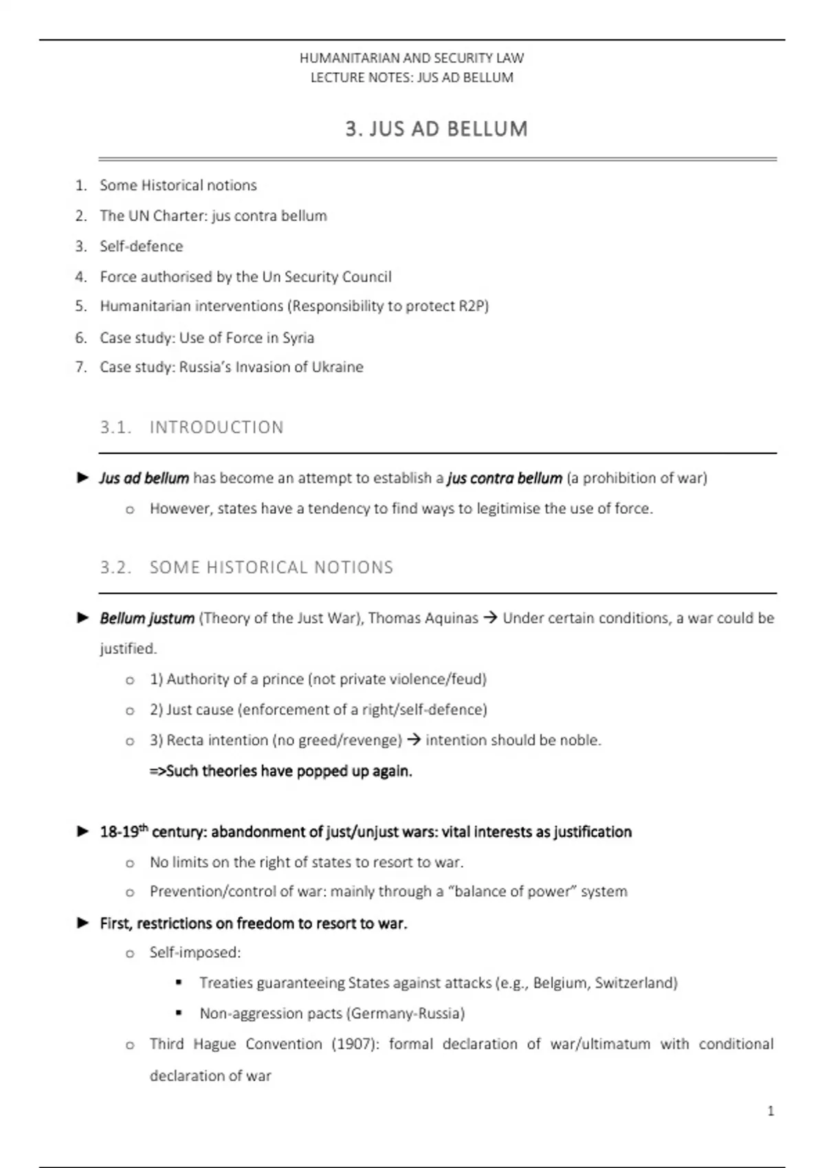LECTURE NOTES: JUS AD BELLUM