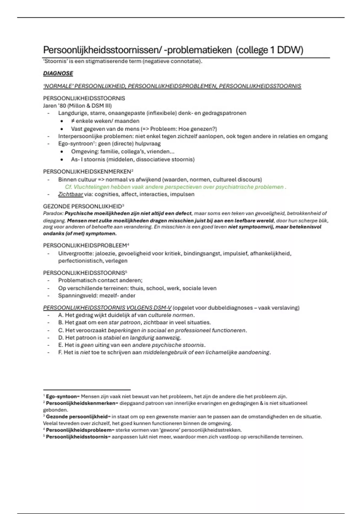 Persoonlijkheidsstoornissen/ -problematieken (college 1 DDW)