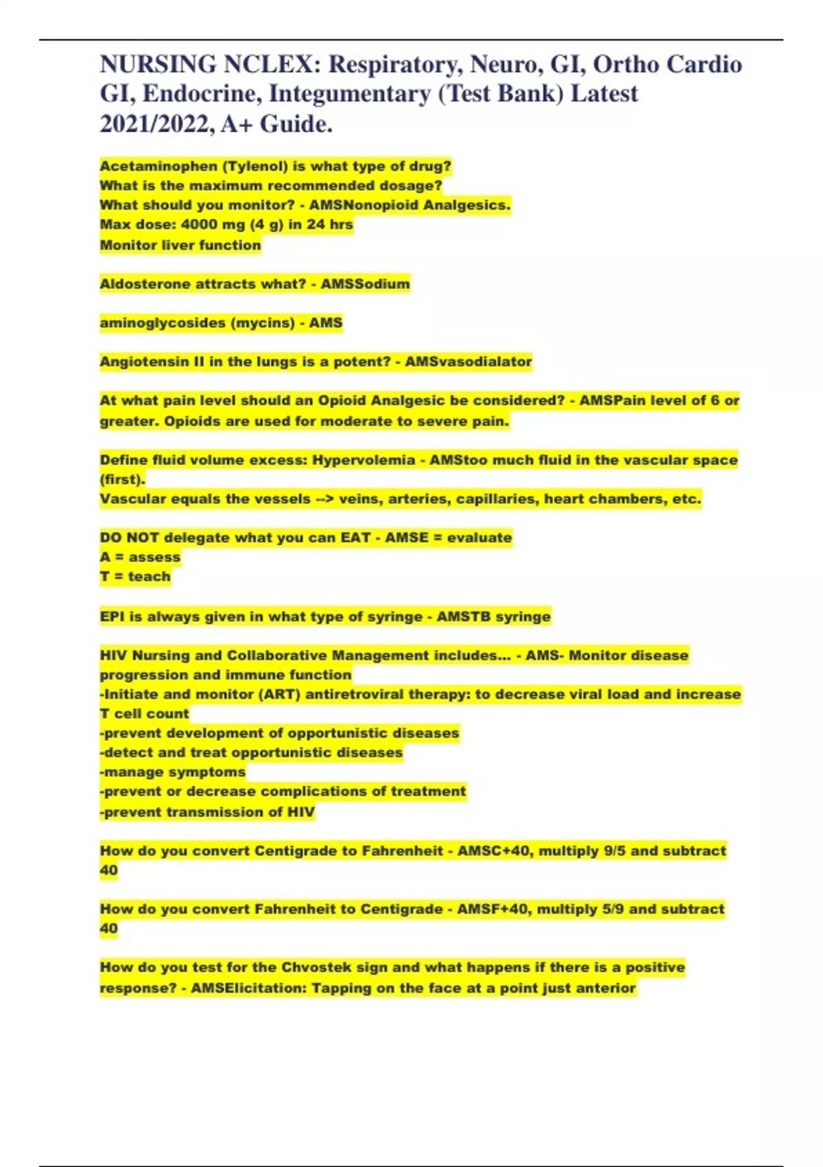 , NURSING NCLEX: Respiratory, Neuro, GI, Ortho Cardio