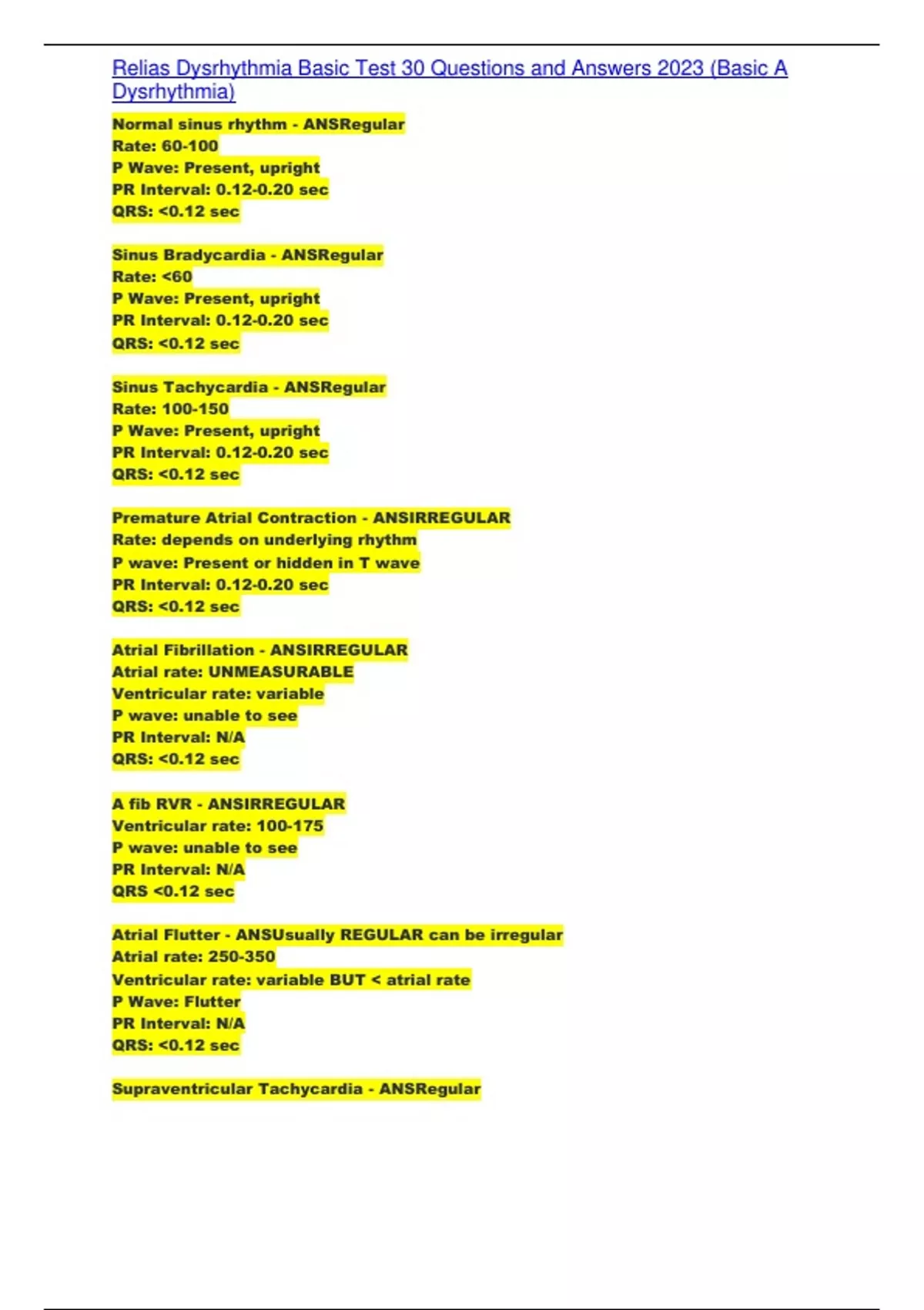 Relias Dysrhythmia Basic Test 30 Questions and Answers 2023 (Basic A Dysrhythmia).pdf