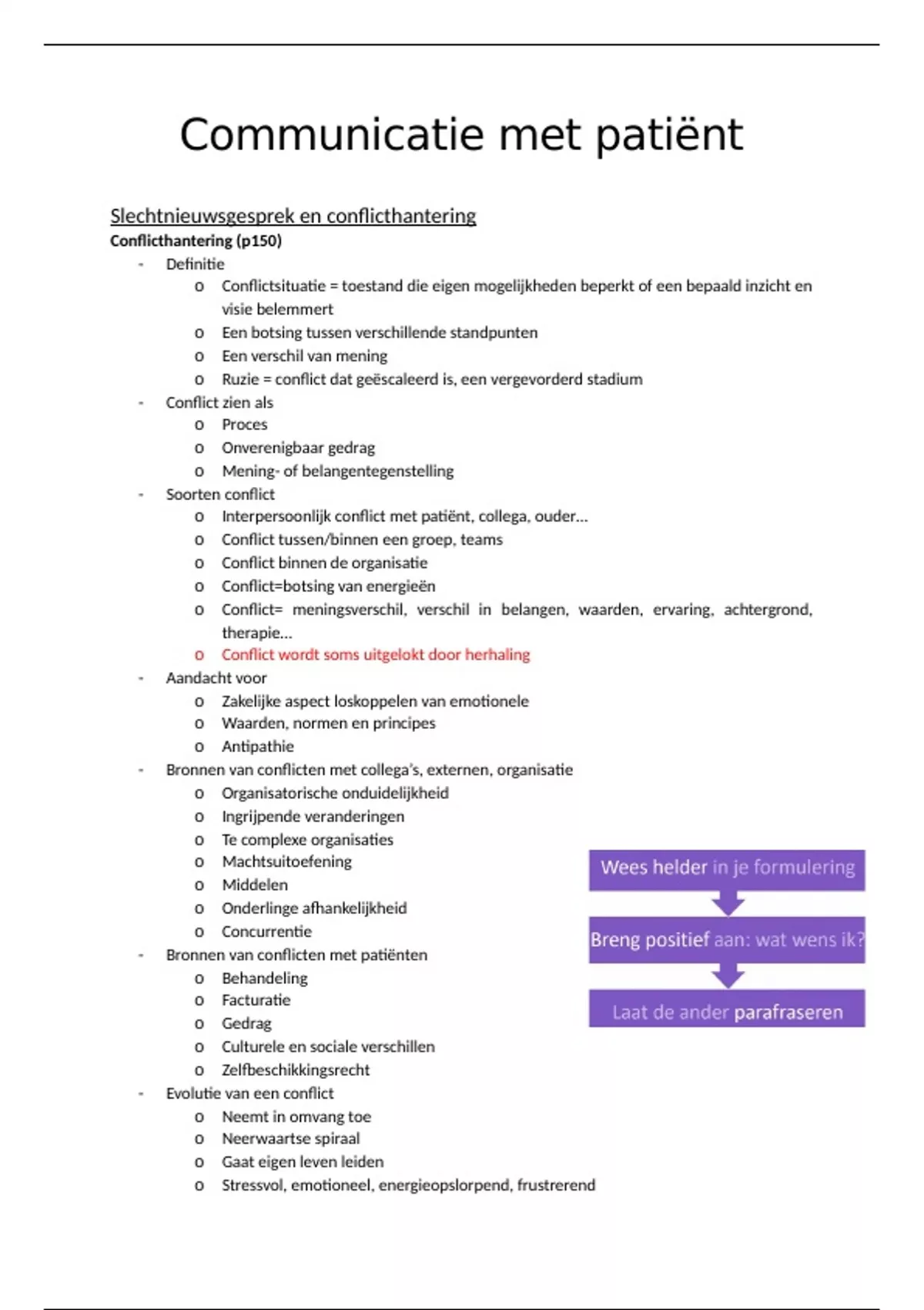 Samenvatting van 21 pagina's voor het vak communicatie met de patiënt deel 2 aan de Artevelde (-)